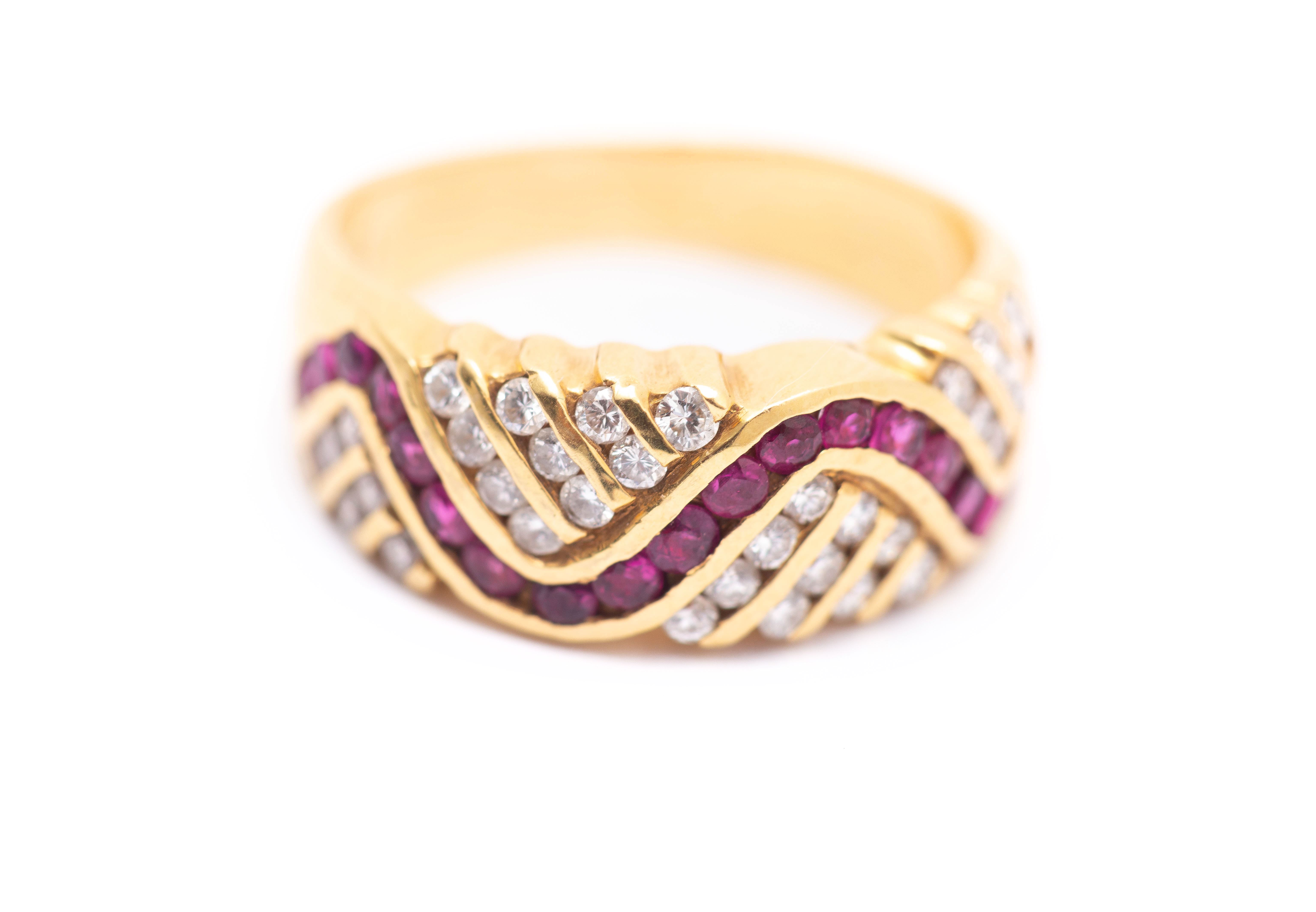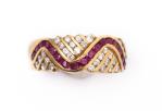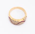 Bague en or jaune .750 avec une ondulation de 19 rubis de 1 pt, et 33 diamants de 1 pt