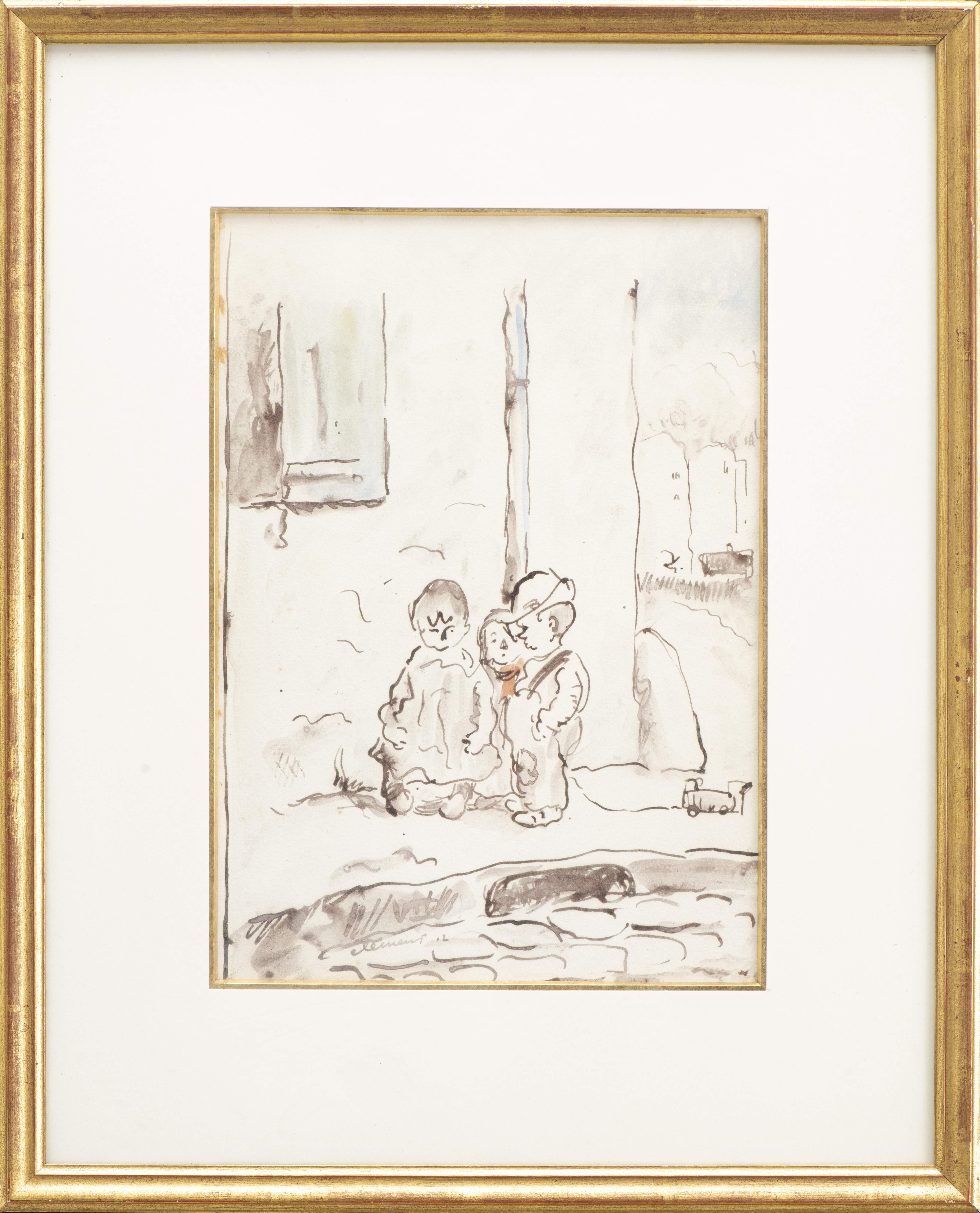- "Trois gosses de rue", plume à l'encre sépia sbg 32x23 cm