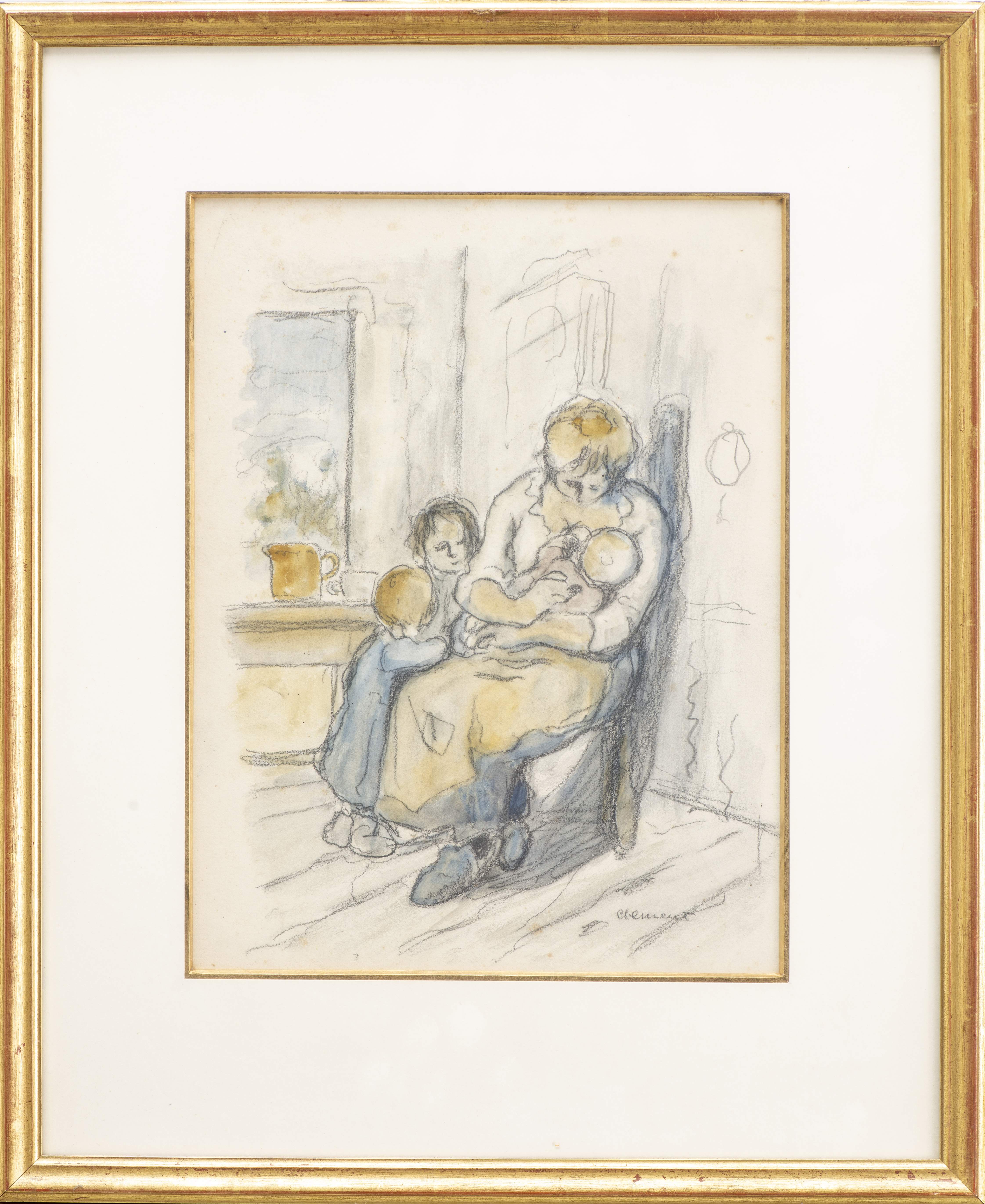 - "L'allaitement" dessin au crayon et pastel sur papier sbd au crayon 33.5x25.5 cm