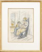 - "Les deux Grands-mères", dessin au crayon et pastel sur papier sbd au crayon 33.5x25.5 cm