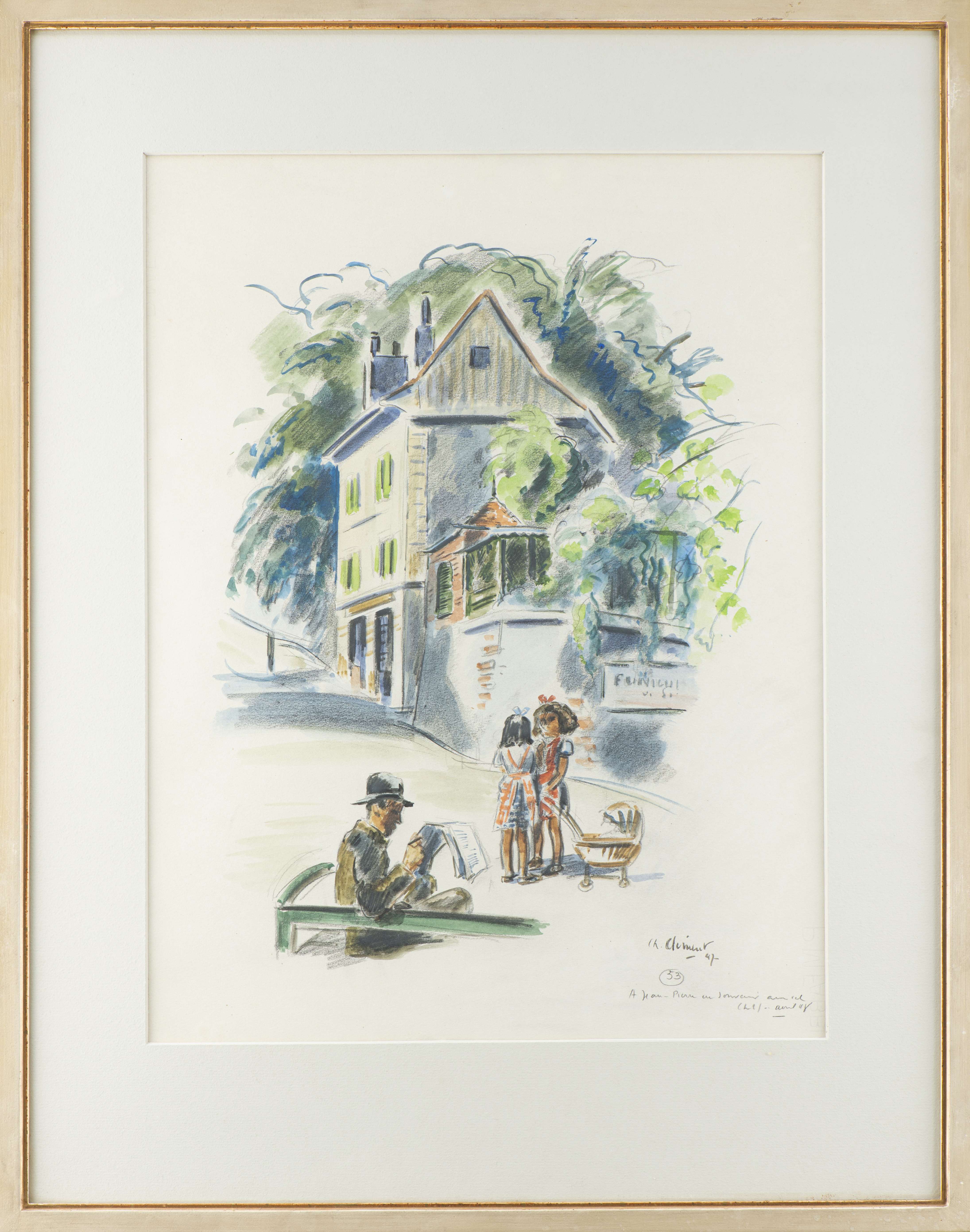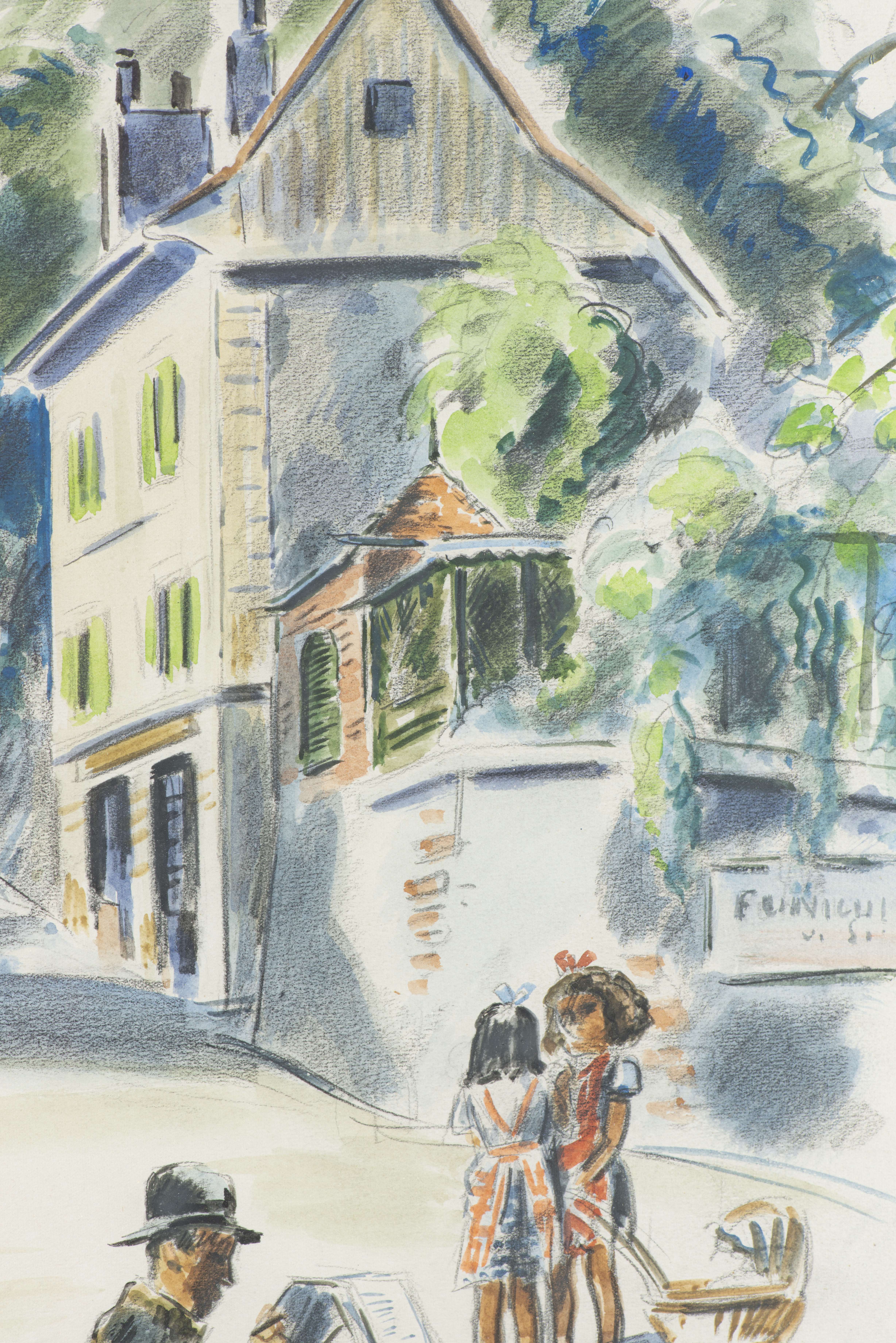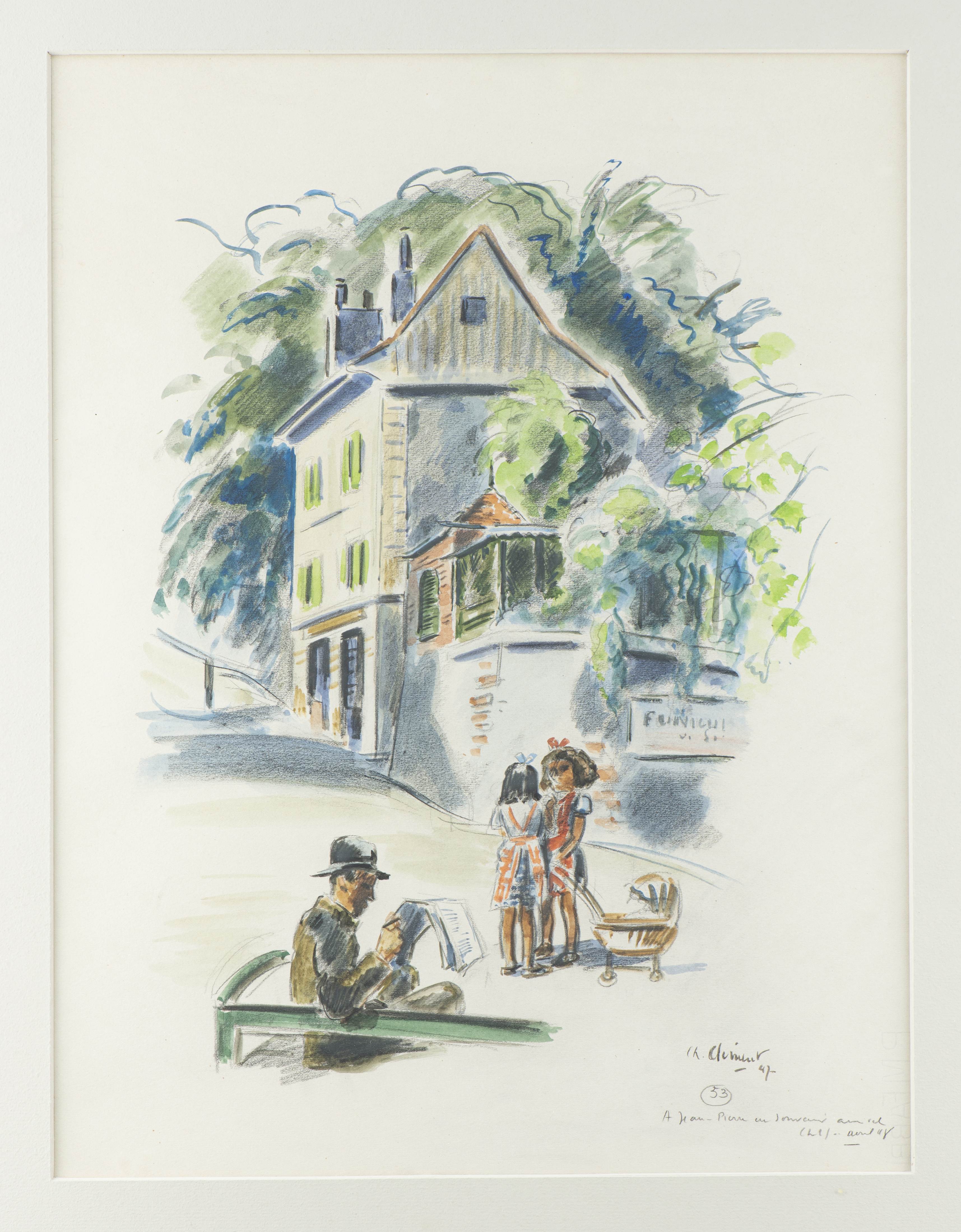 Charles CLÉMENT (1889-1972) " Rue de la Barre" dessin et aquarelle sur papier et signé Charles Clément et daté 47 en bas à droite.