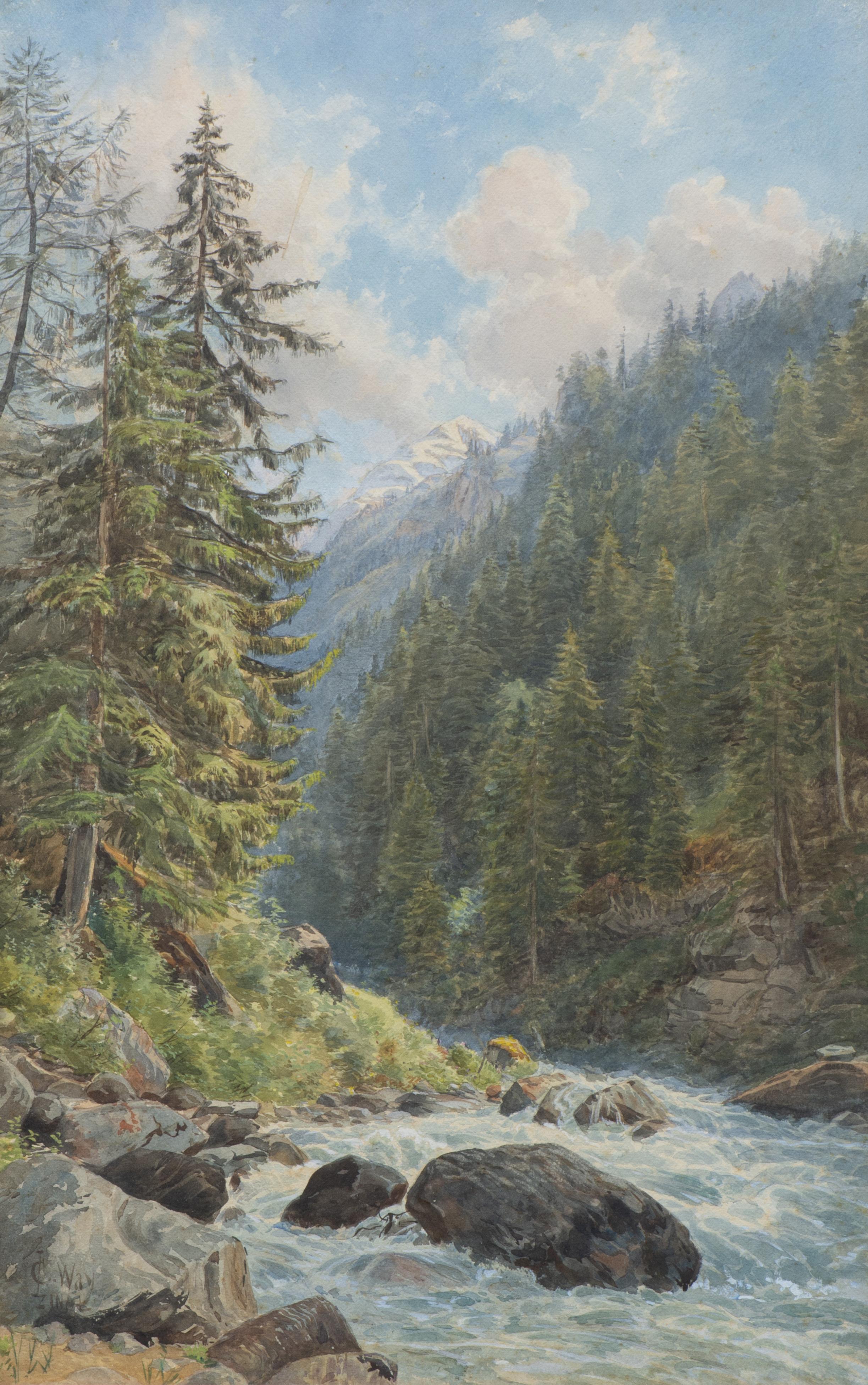 Charles Jones WAY (1834/35-1919) "Val d'anniviers à Zinal" aquarelle sur papier monogrammé & localisé en bas à gauche.