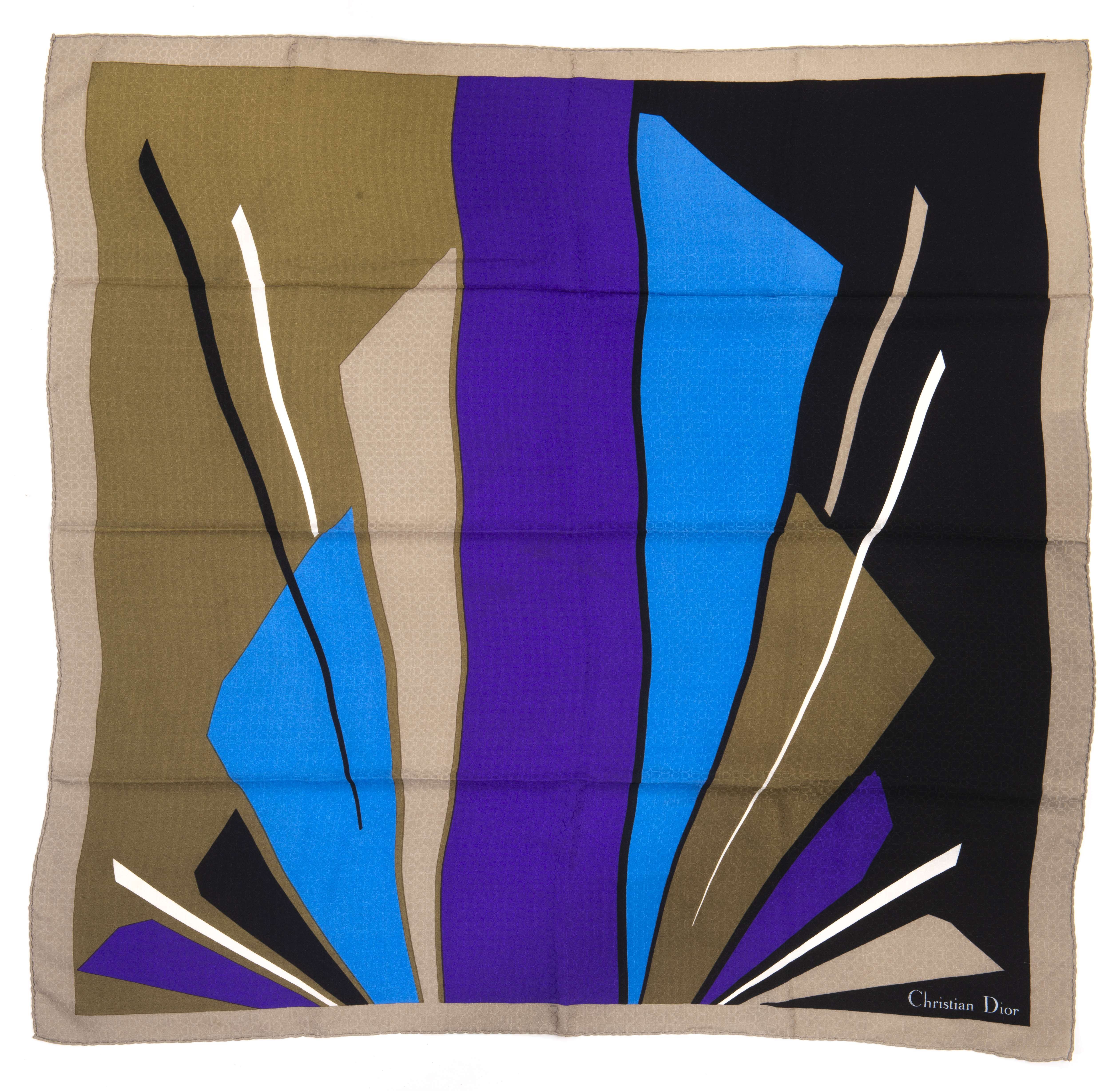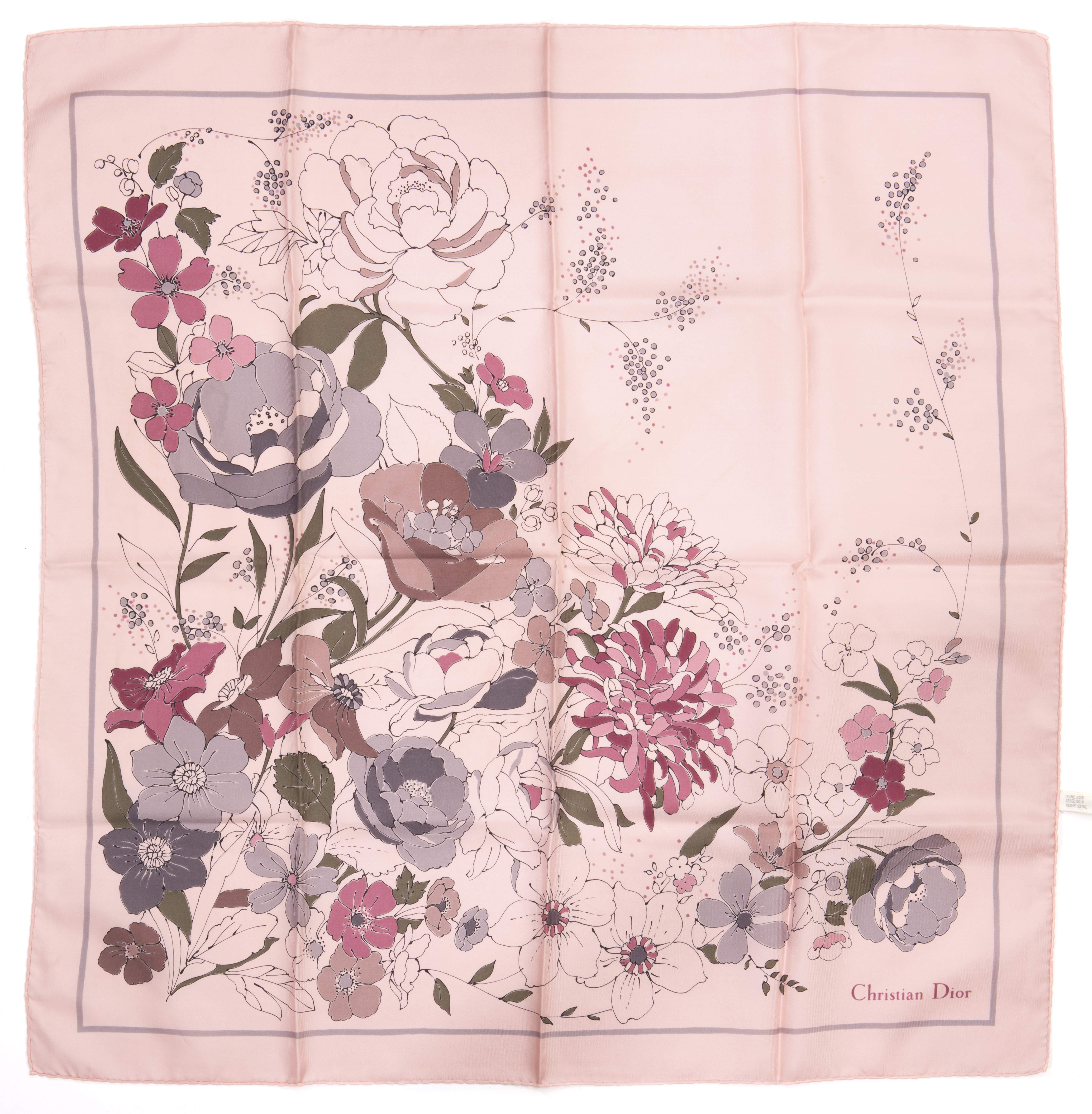 Christian Dior, lot de 3 trois carrés et une écharpe en soie :
