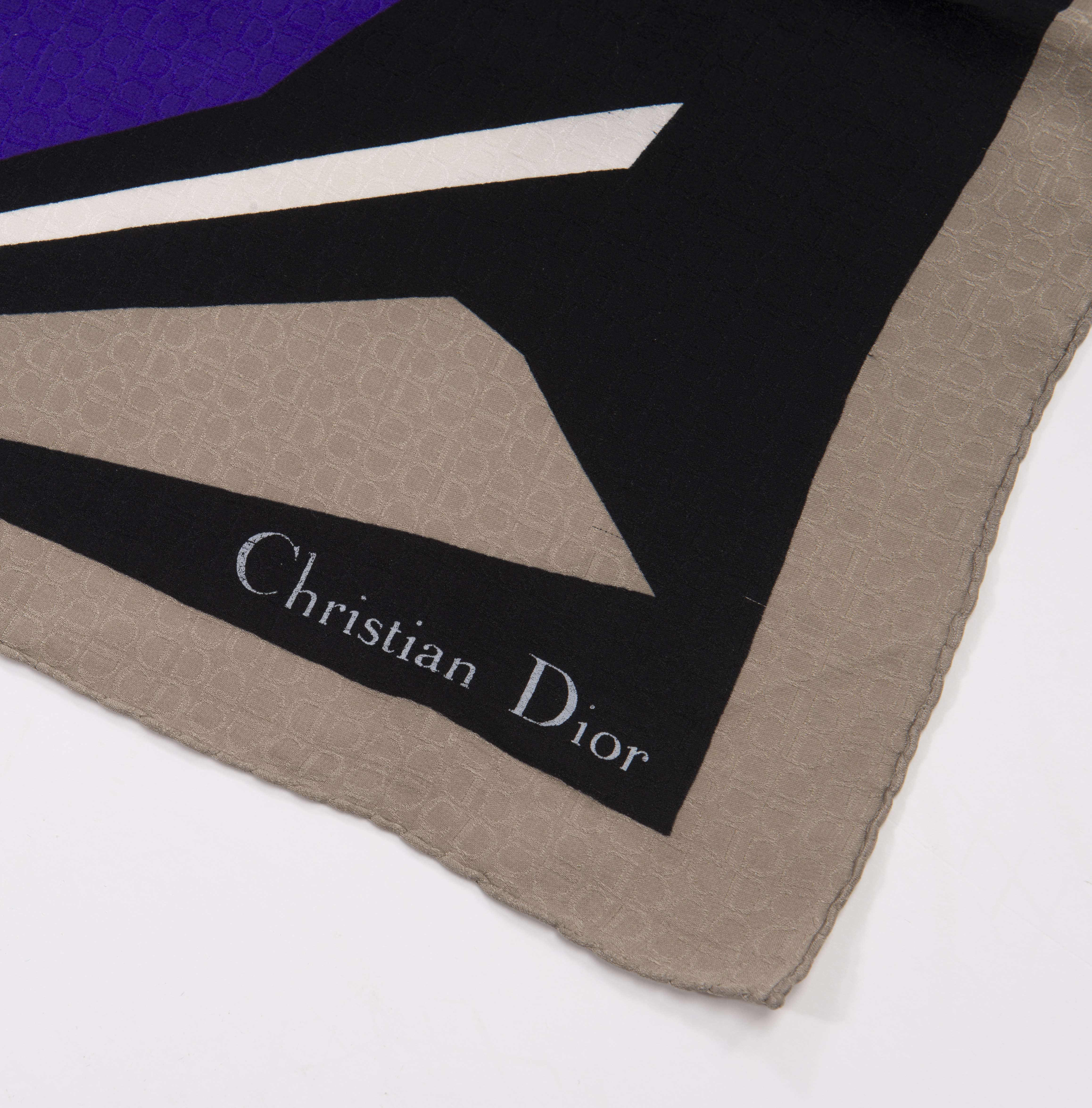 - 1 carré à fond bleu marin à l'effigie de Dior (76x76 cm)