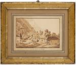 Christian Gottlieb STEINLEN (1779-1847) dit Théophile "Vue des bains de Lavey", dessin au crayon et lavis sbd.