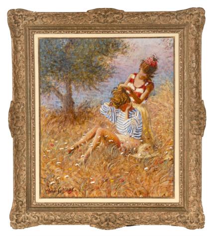 Claude FOSSOUX (né en 1946) "La coiffure", huile sur toile, sbg.