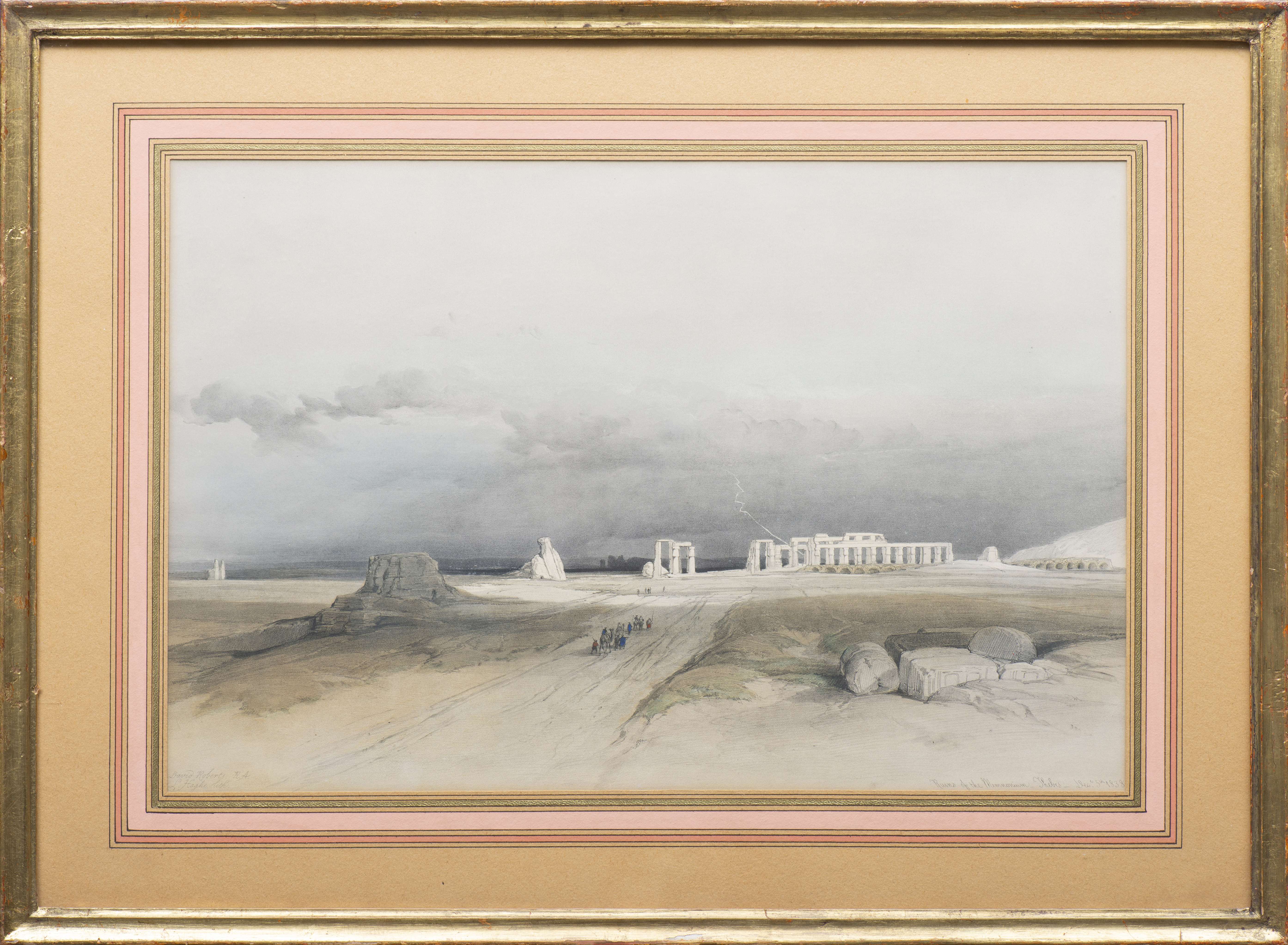 David ROBERTS (1796-1864), "Ruines de Memnonium", Thèbes, 1838, lithographie, lithographié par Louis HAGHE (1806- 1885), signé en bas à gauche, titré, daté et localisé en bas à droite.