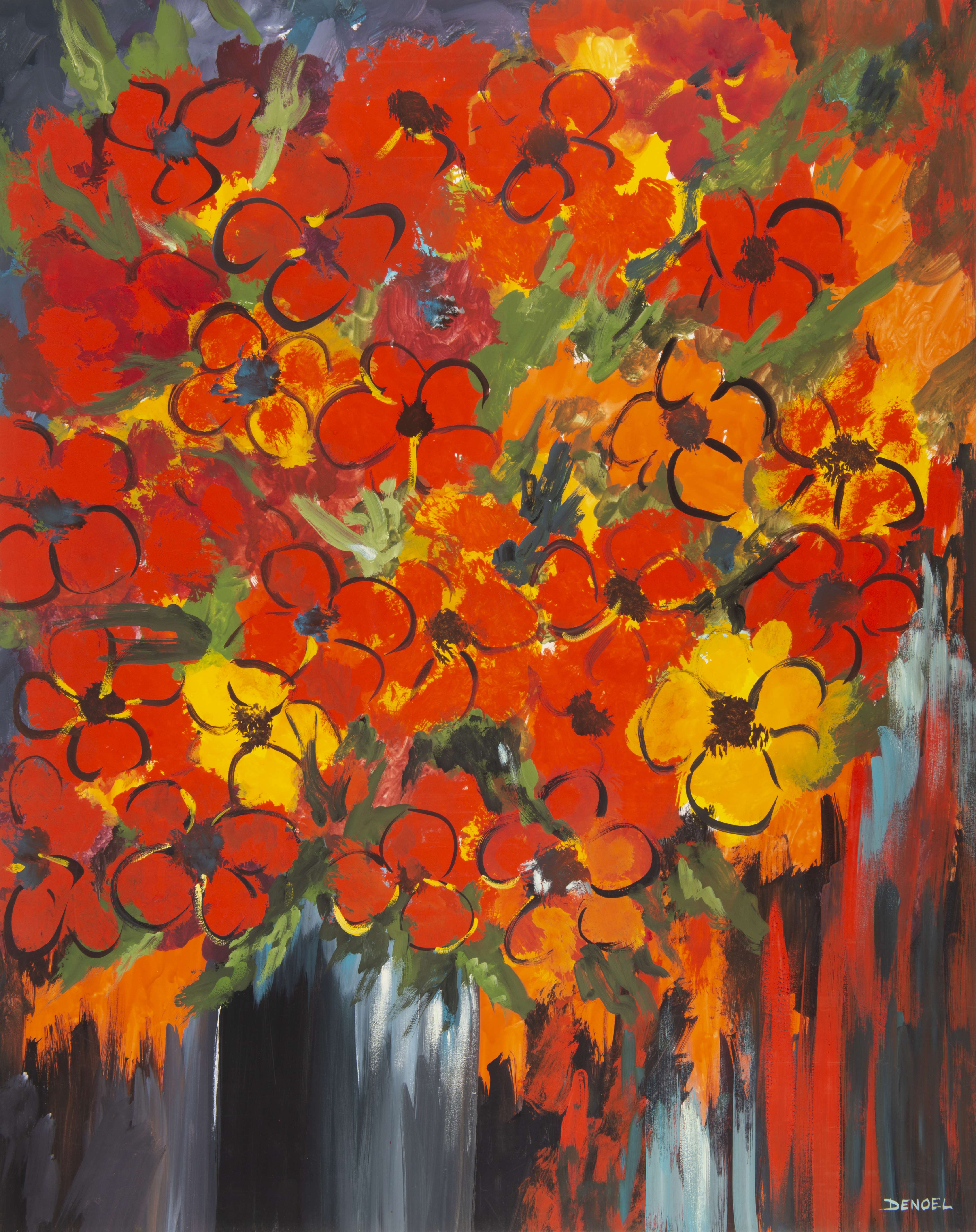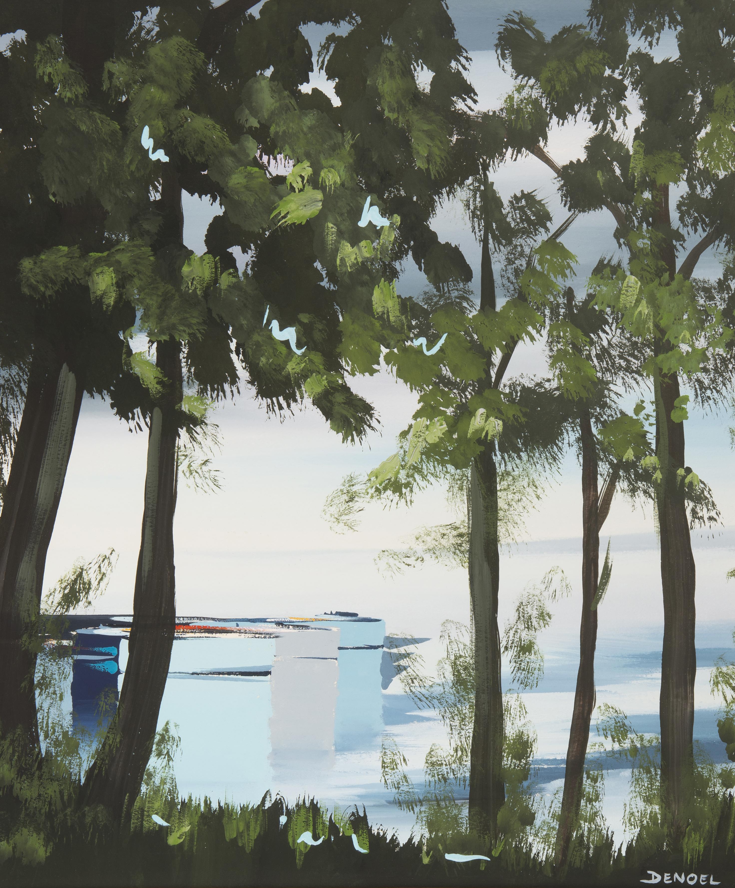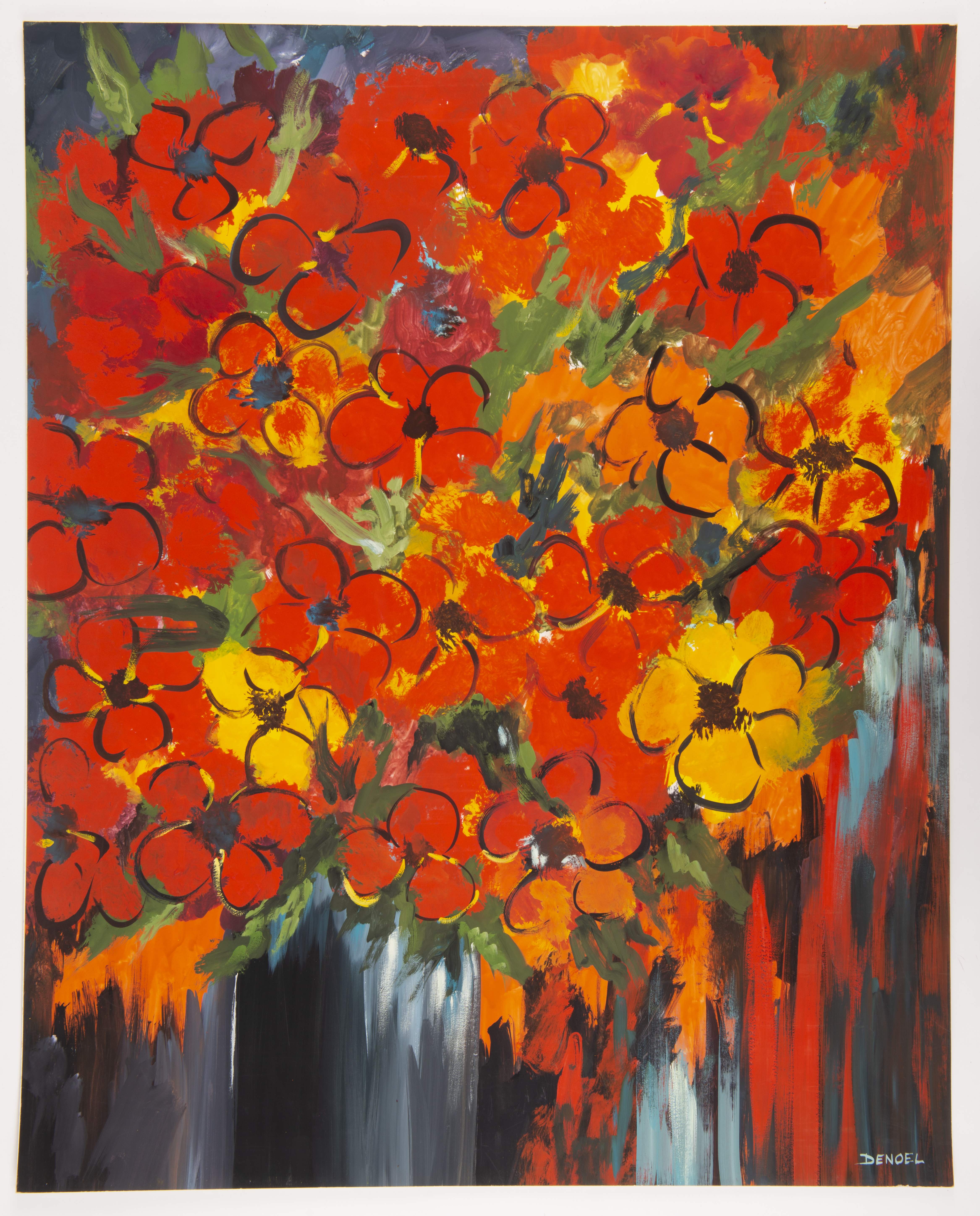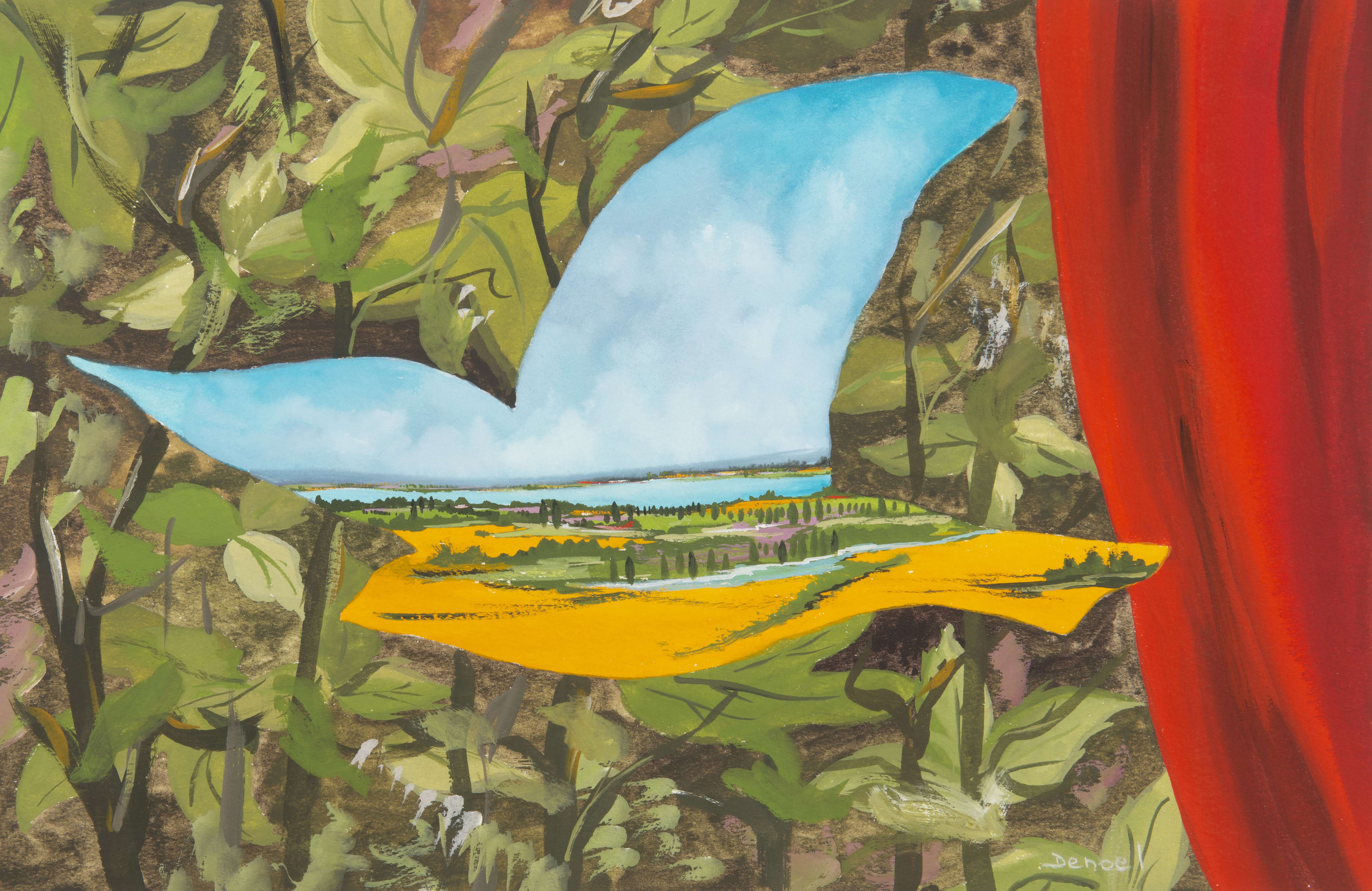 DENOEL (né en 1934), portefolio comprenant huit gouaches sur papier et une huile sur toile signé en bas à droite (sauf une non signé).