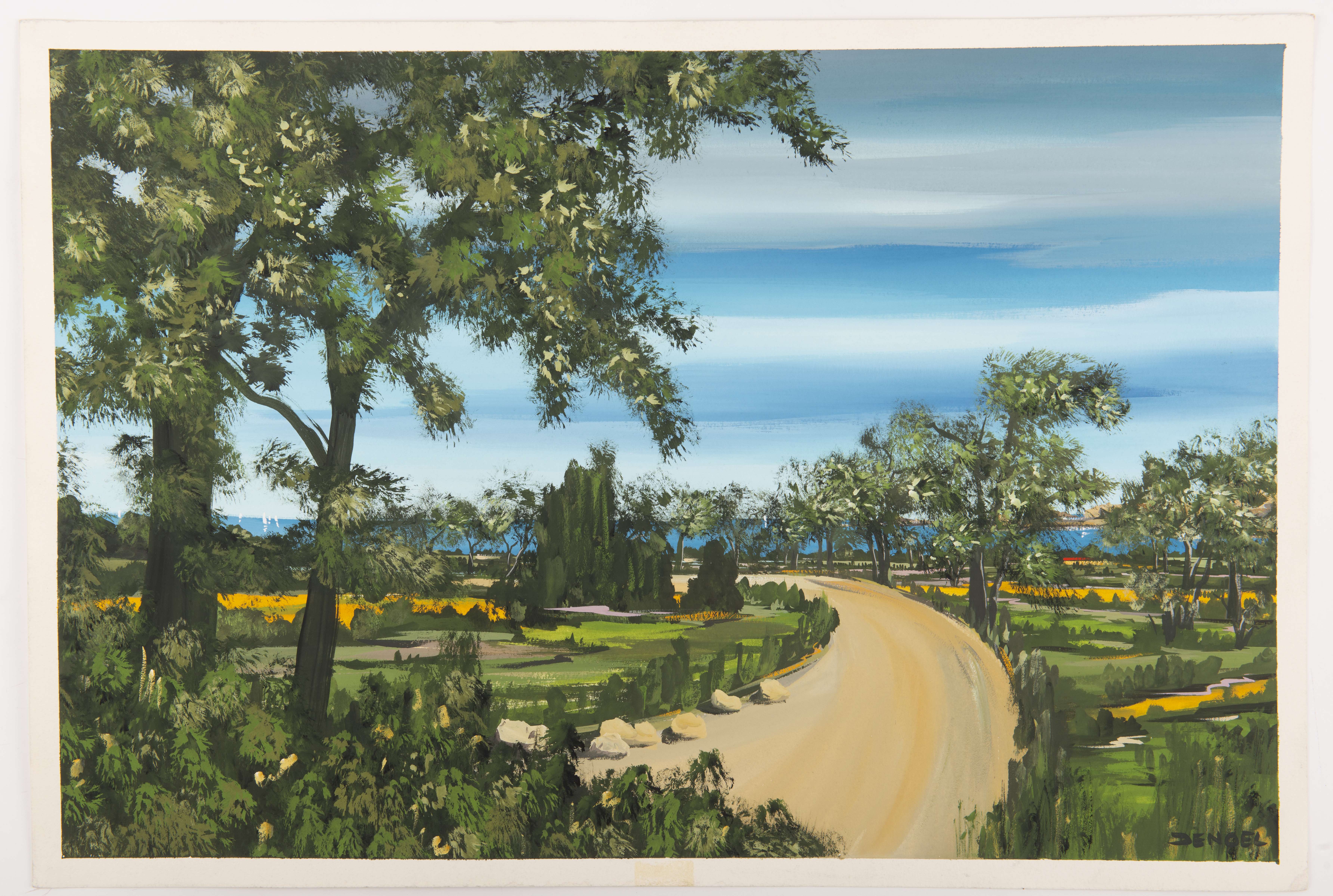 DENOEL (né en 1934), portefolio de huit gouaches et une huile