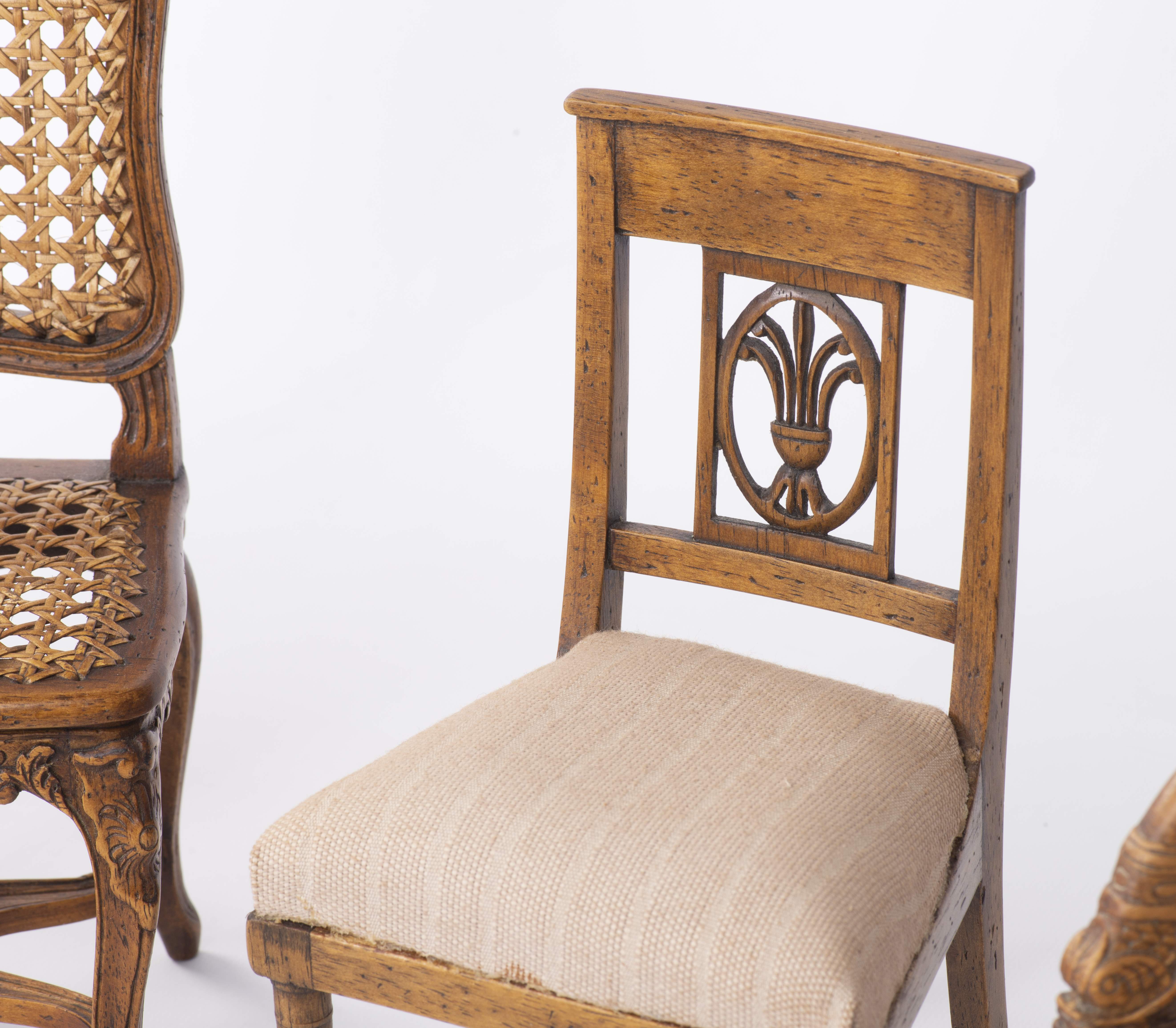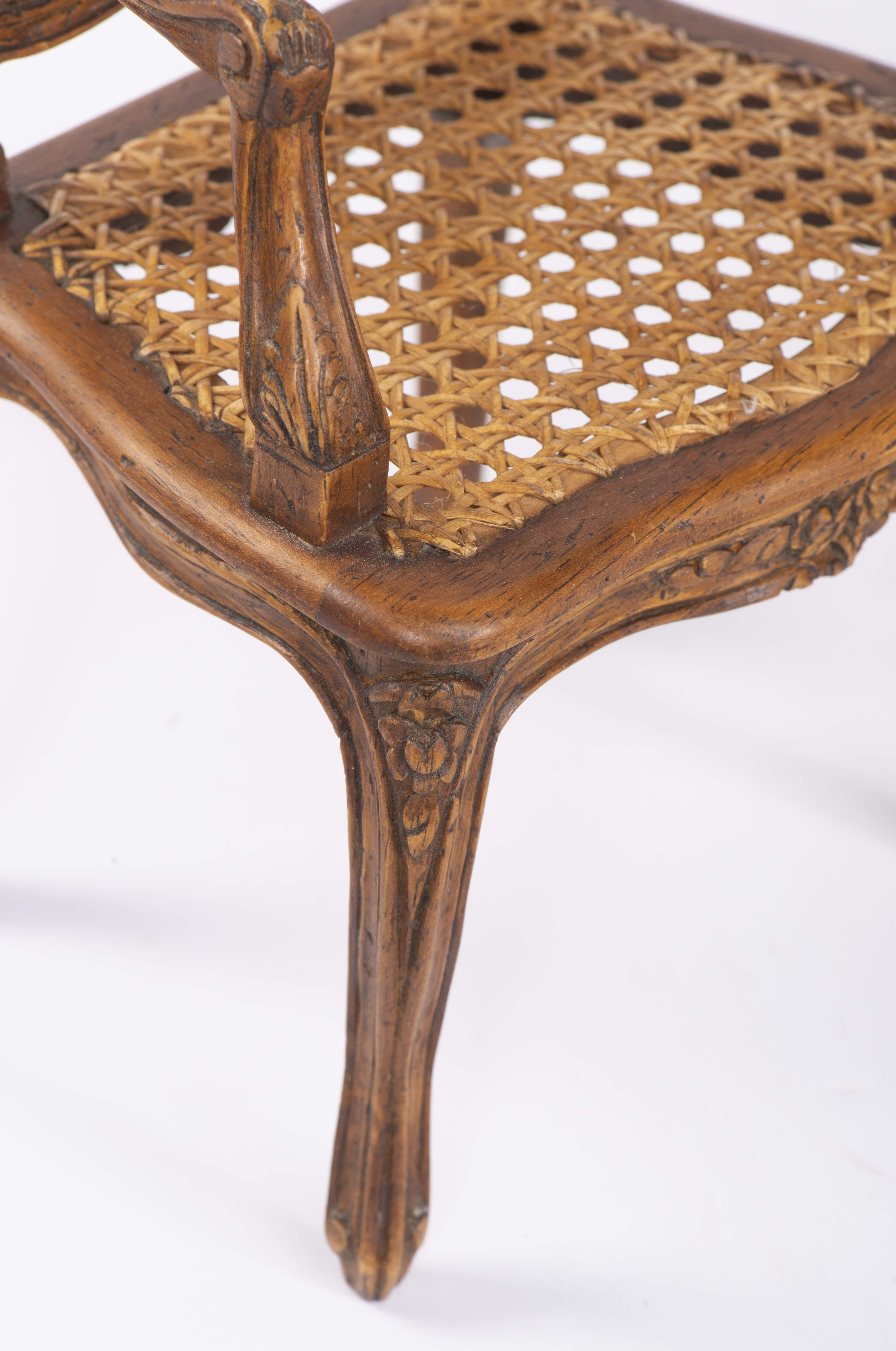 - 1 chaise et 1 fauteuil canné de style Régence H. 25.6x16x13 cm & 24.9x11.8x12.9 cm