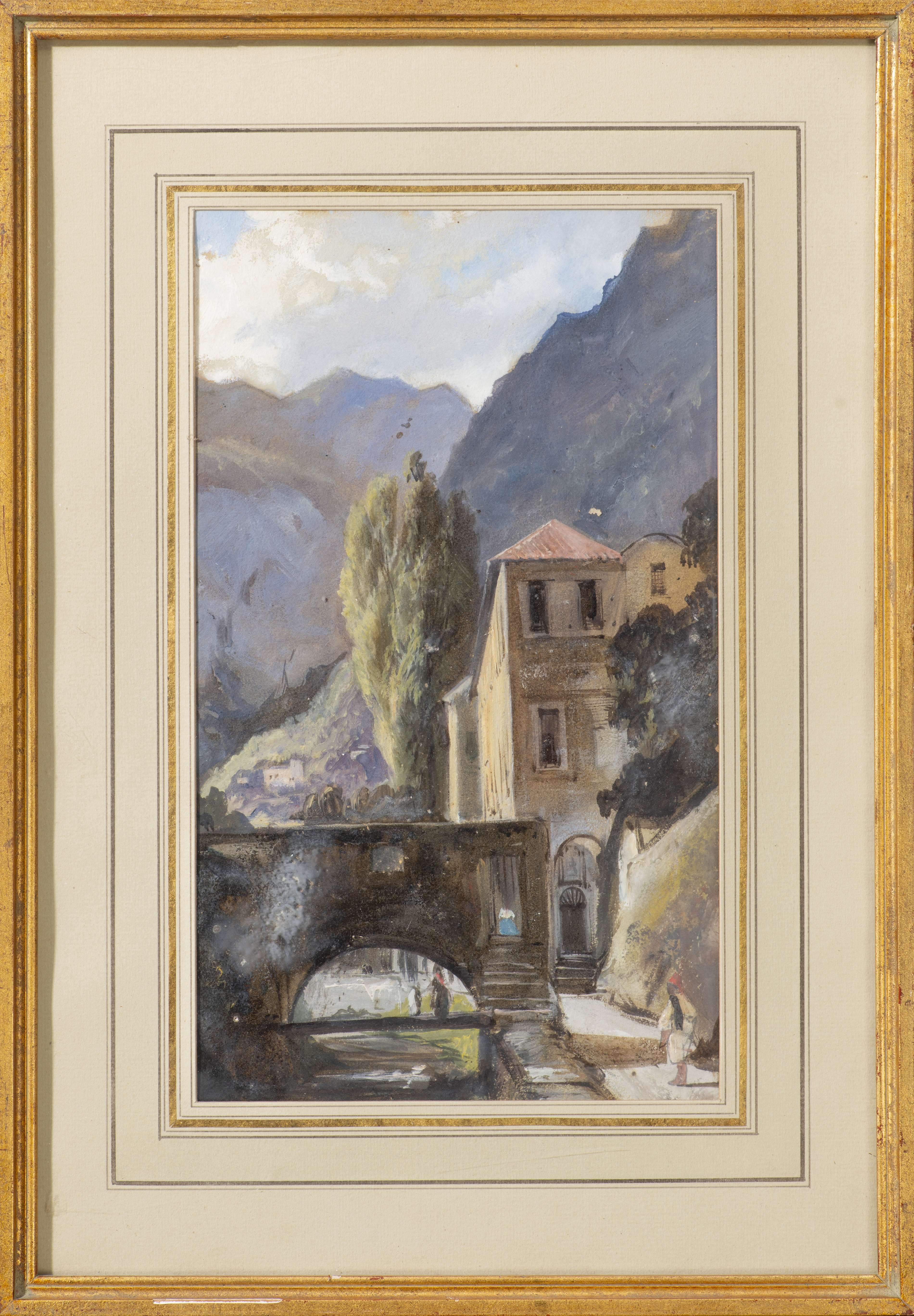 - "Maison à côté d'un ruisseau" (Italie ou Grèce), huile sur papier non signé.
