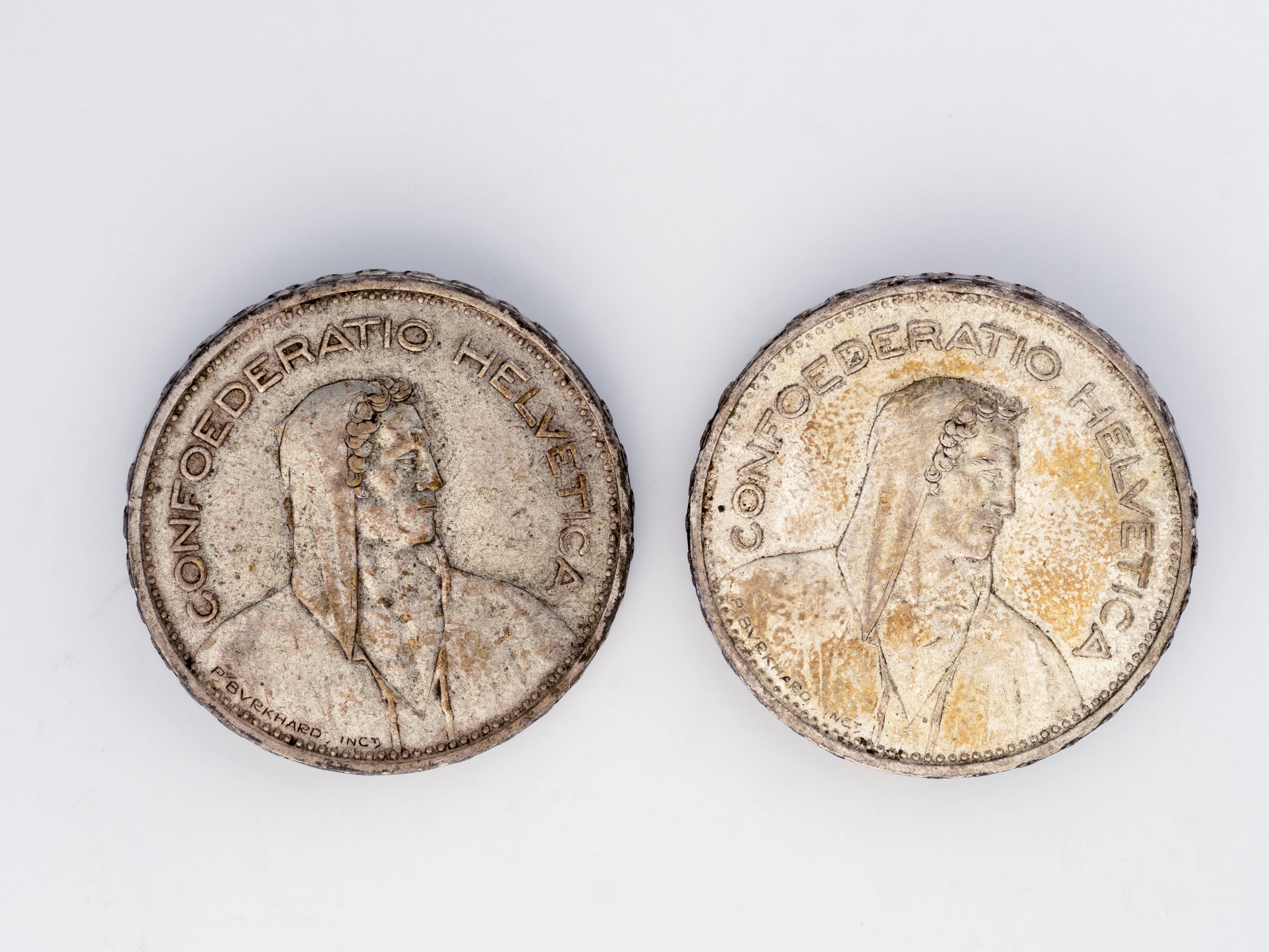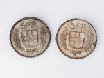 Deux pièces de 5 Fr. suisses en argent