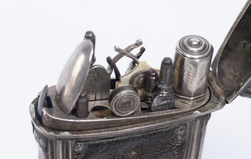 -étui à rouge à lèvre à décor floral en argent .900. L. 4.5 cm