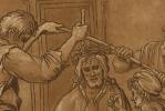- "Le repas", gravure rehaussée, 44x28.5 cm.