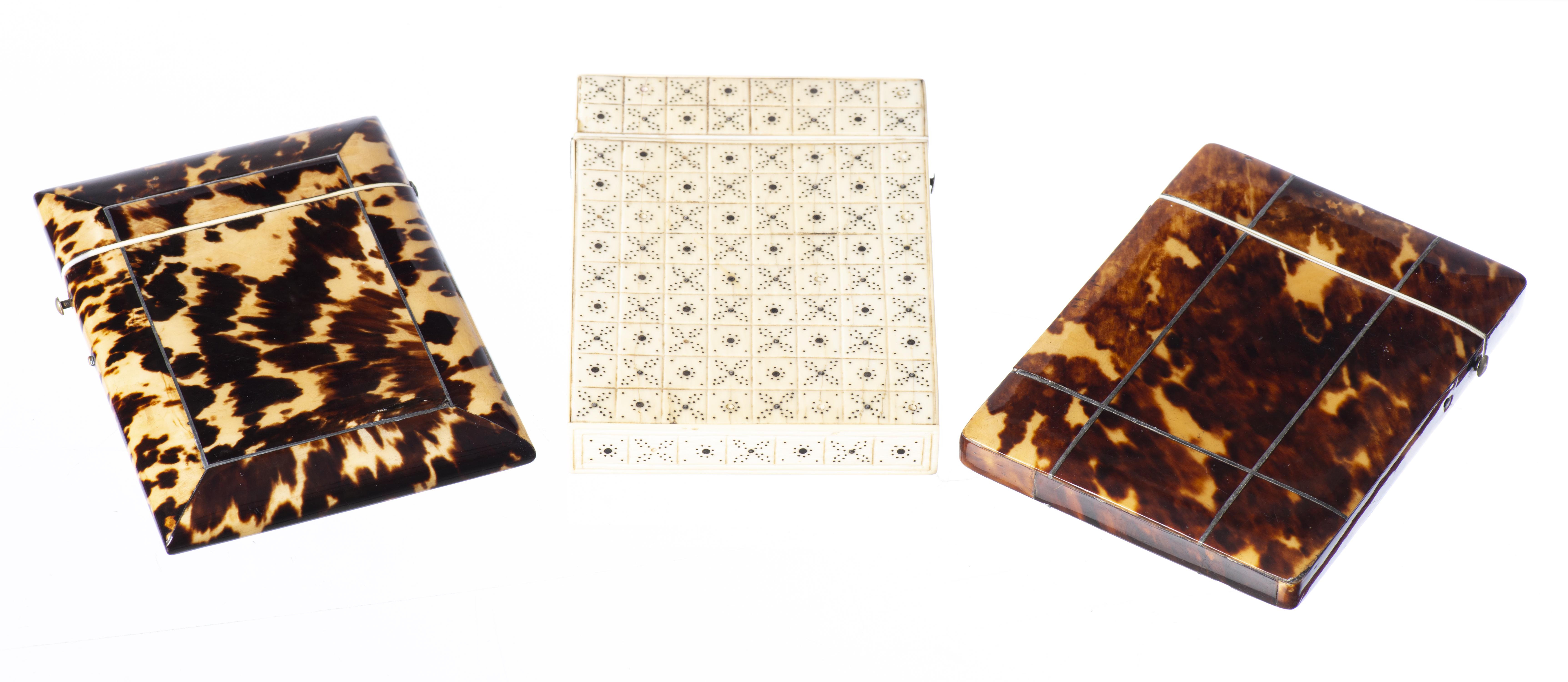 Ensemble de trois élégants porte-cartes en écaille de tortue et ivoire.