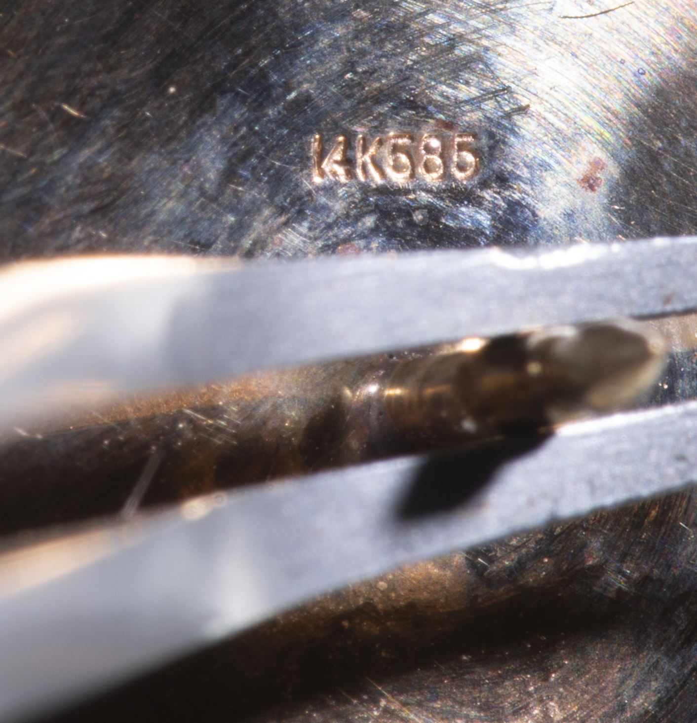 Epingle de cravate en or jaune .525 avec un rubis de 0.01 ct.