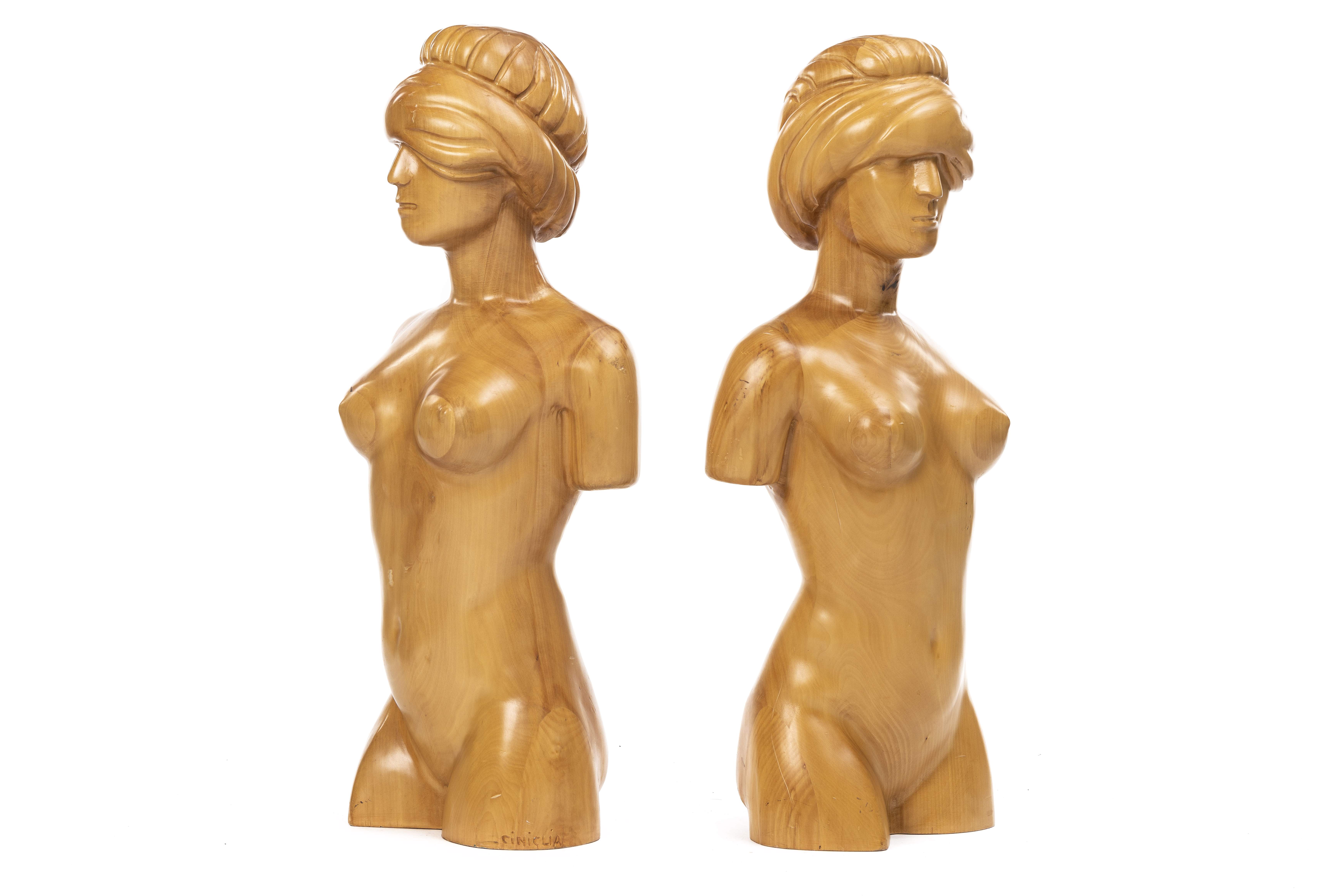 Giulio Ciniglia (1931-2007), deux bustes de femme en bois