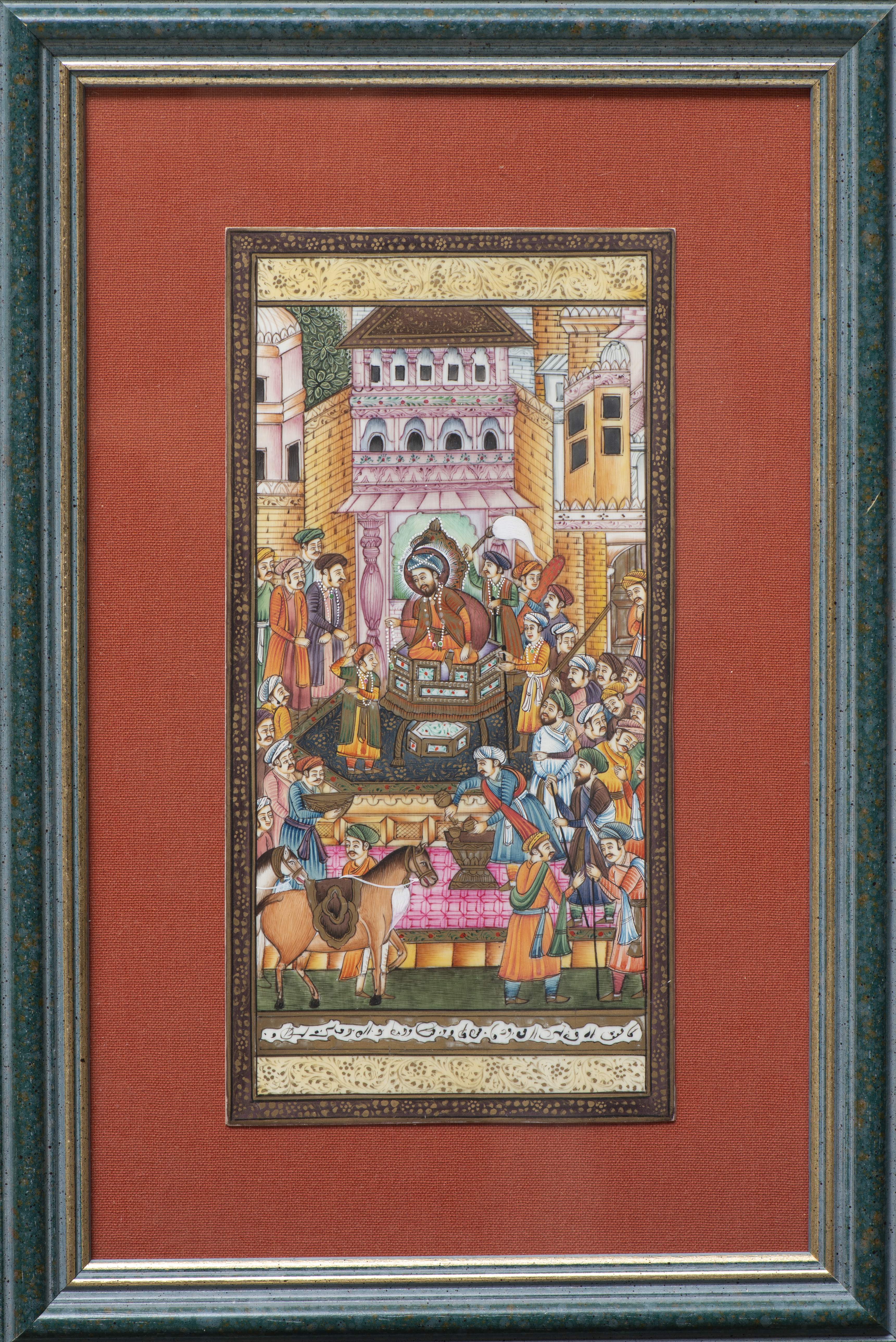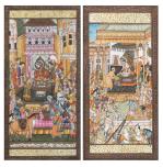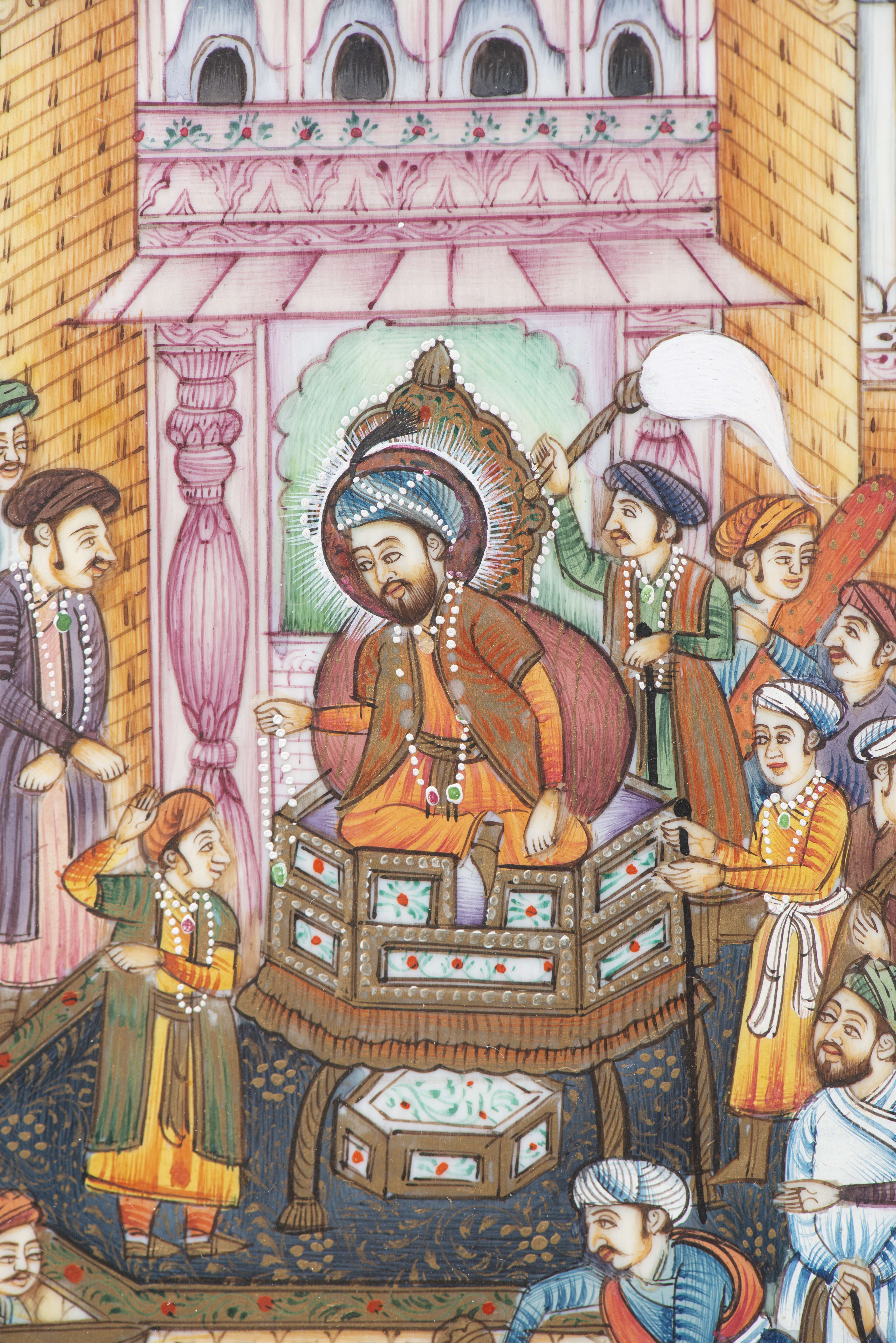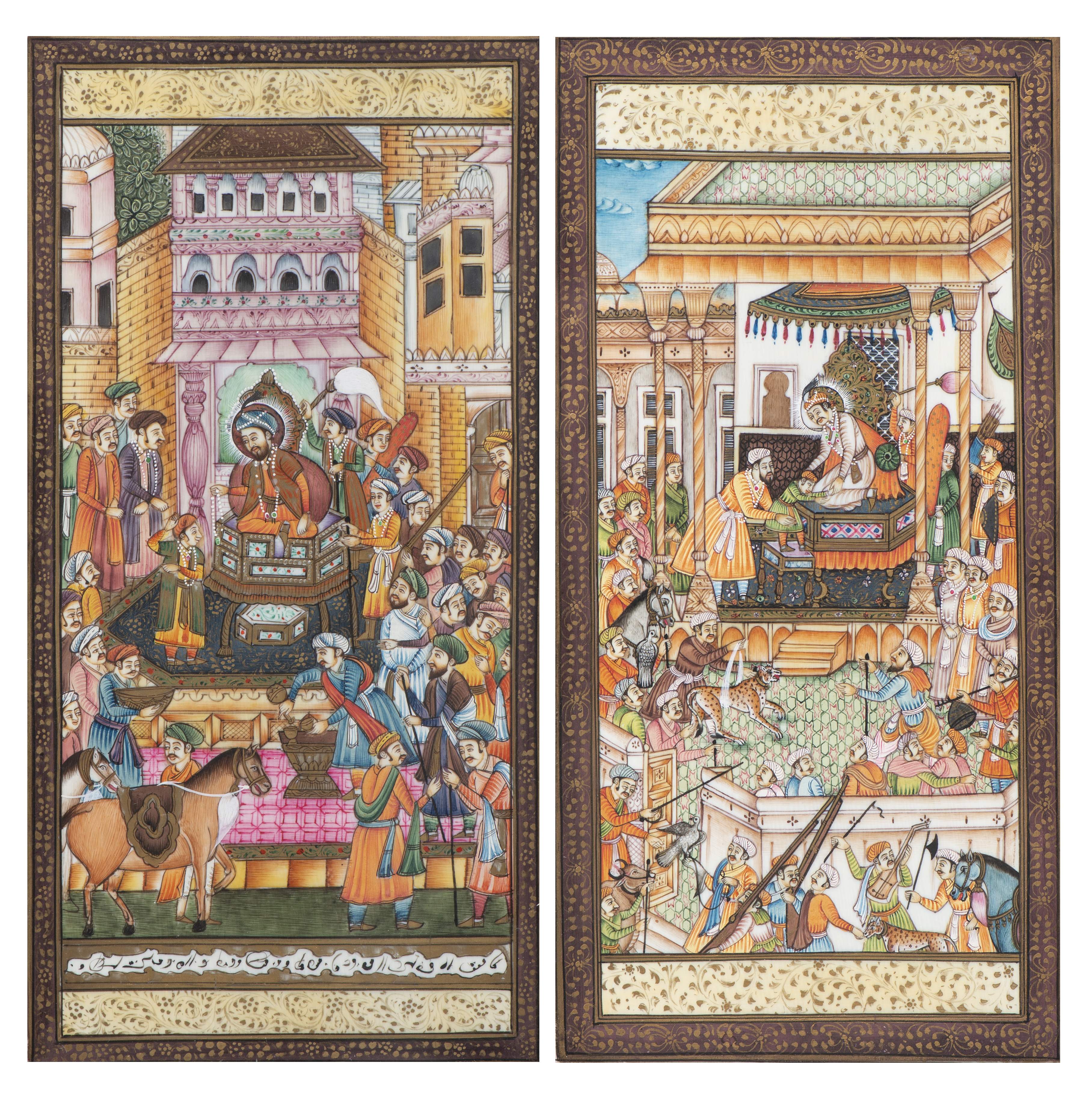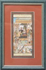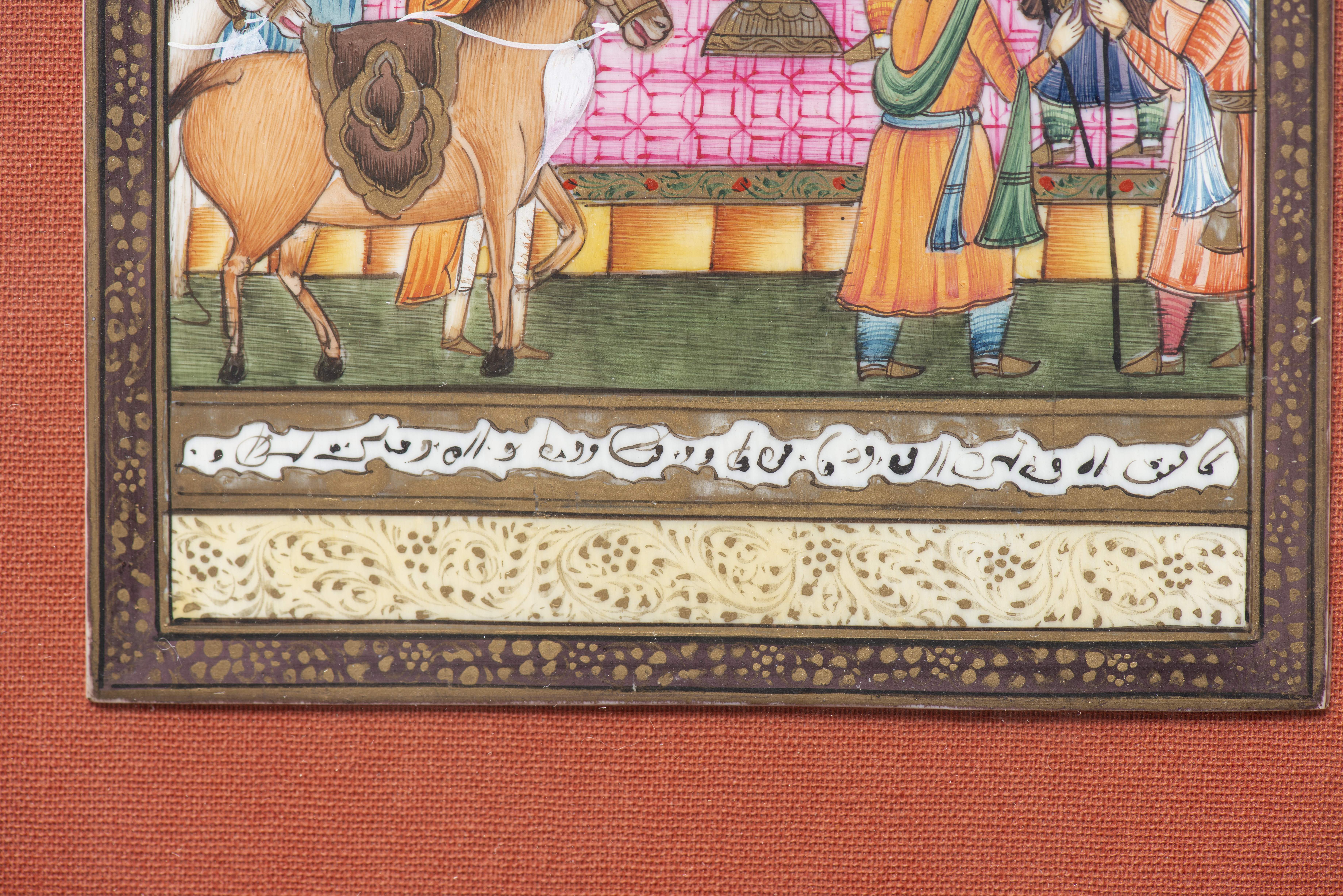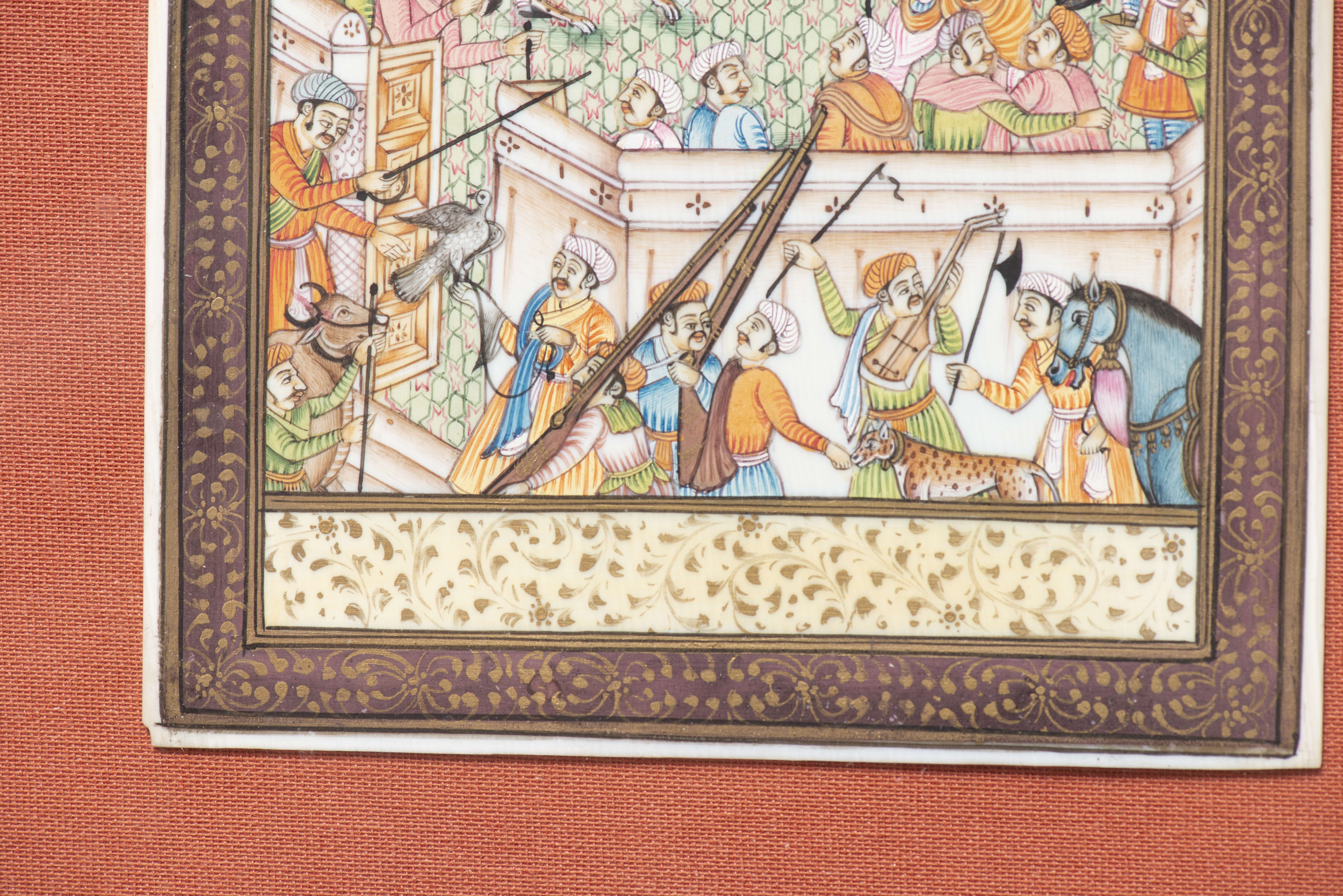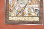 INDE (Radjastan). Deux plaques d'enluminures sur ivoire aquarellées et reprises à l'or.