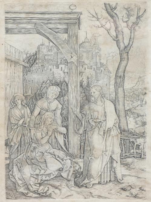En bas à droite quelques coulures d'encre sur le dessin, pour la gravure, déchirure en haut à droite dans la marge, blancheur en bas à gauche, pliure horizontale au milieu delagravure