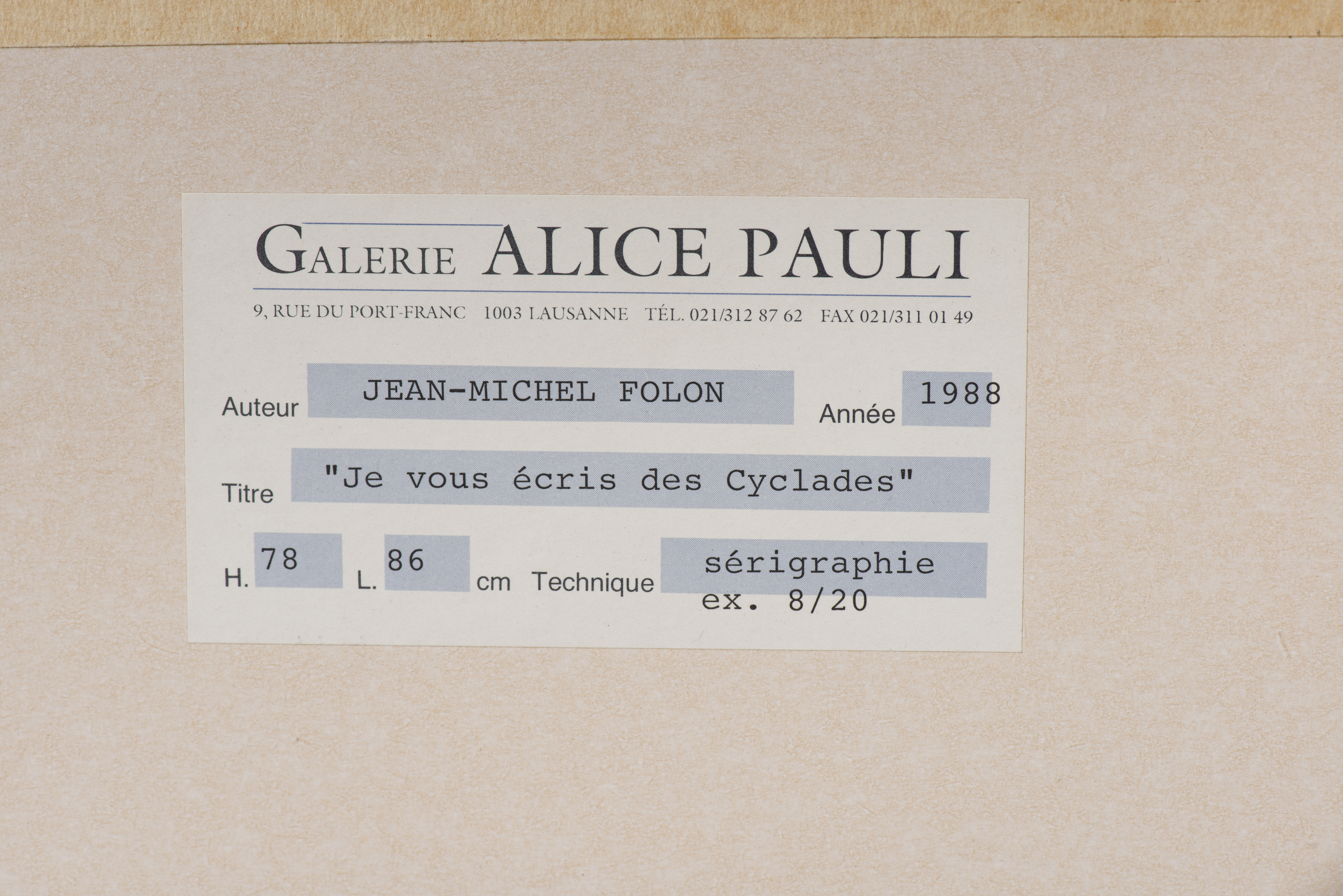 Jean-Michel FOLON (1934-2005), "Je vous écris des Cyclades", 1986, sérigraphie