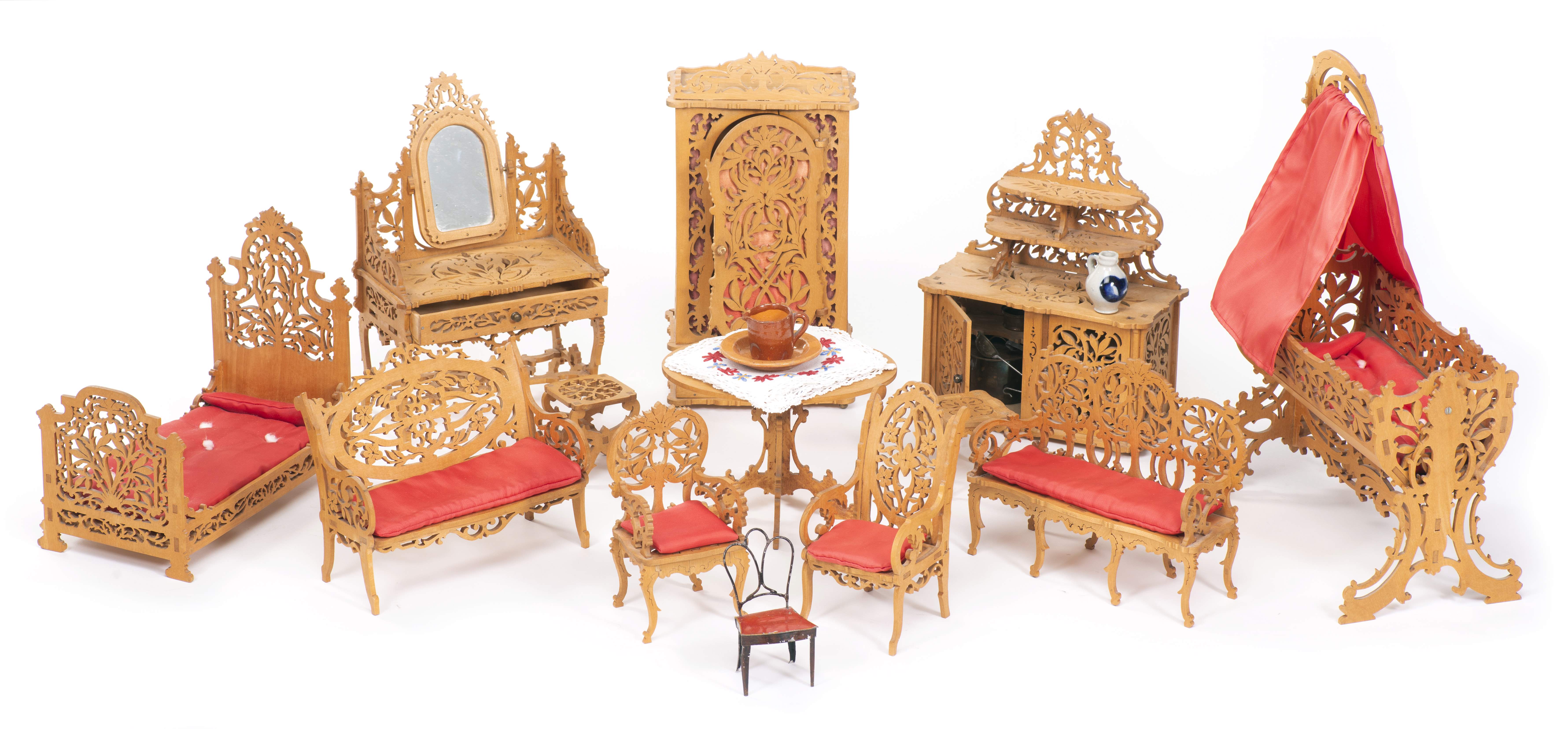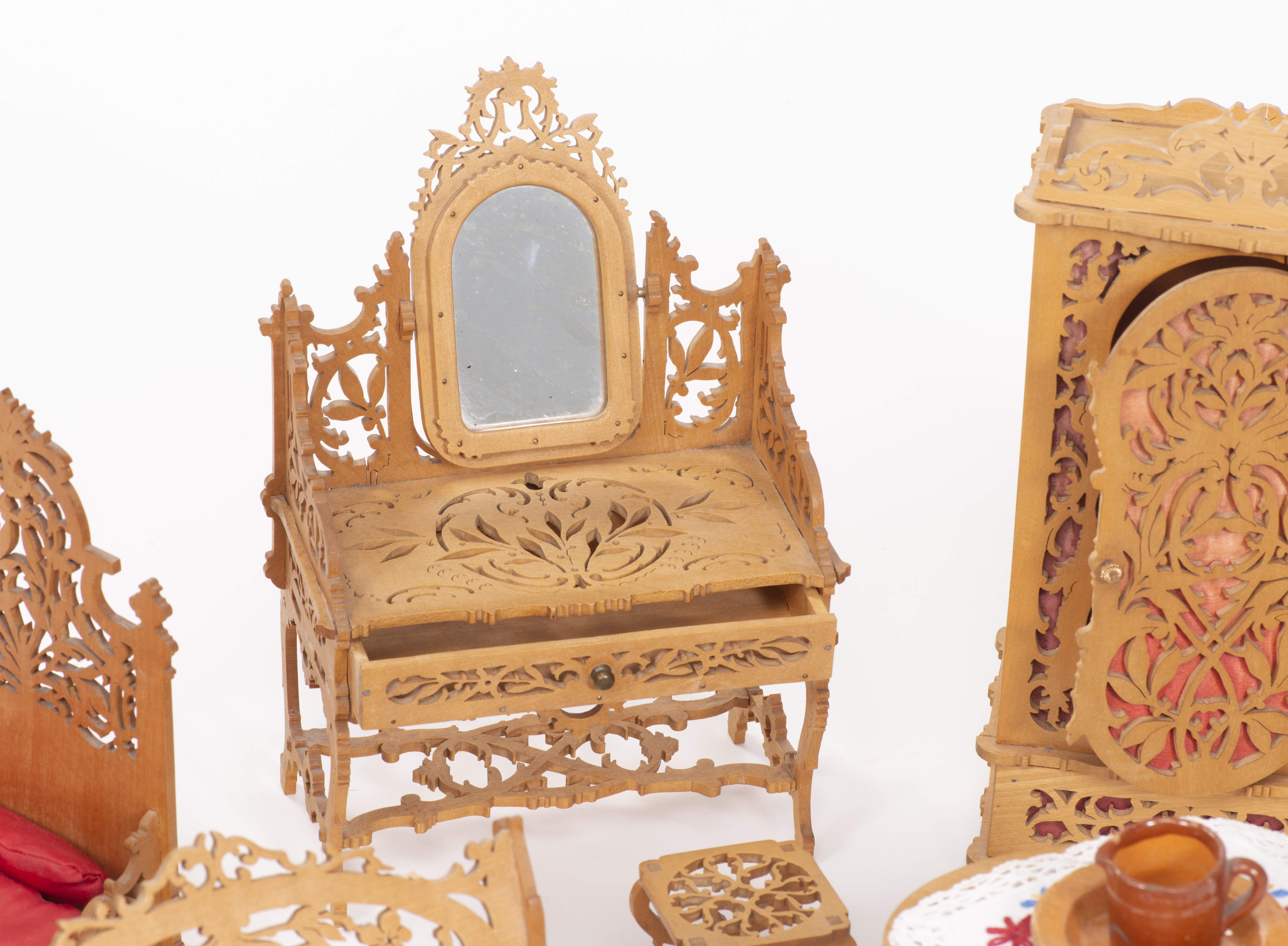 Ensemble de jouets pour poupée en bois sculpté comprenant :