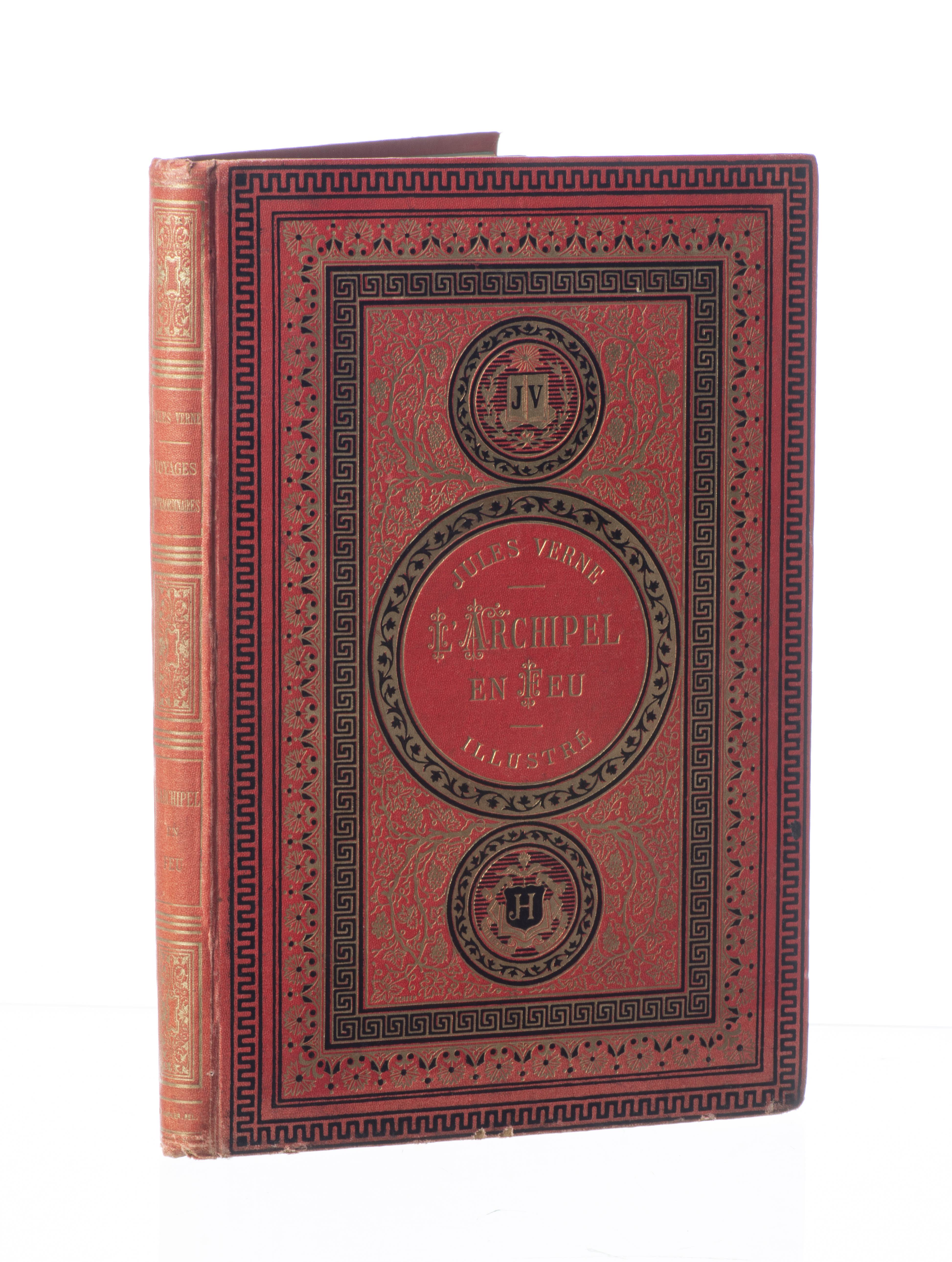 Volume en cartonnage rouge vif aux initiales JV-JH.
