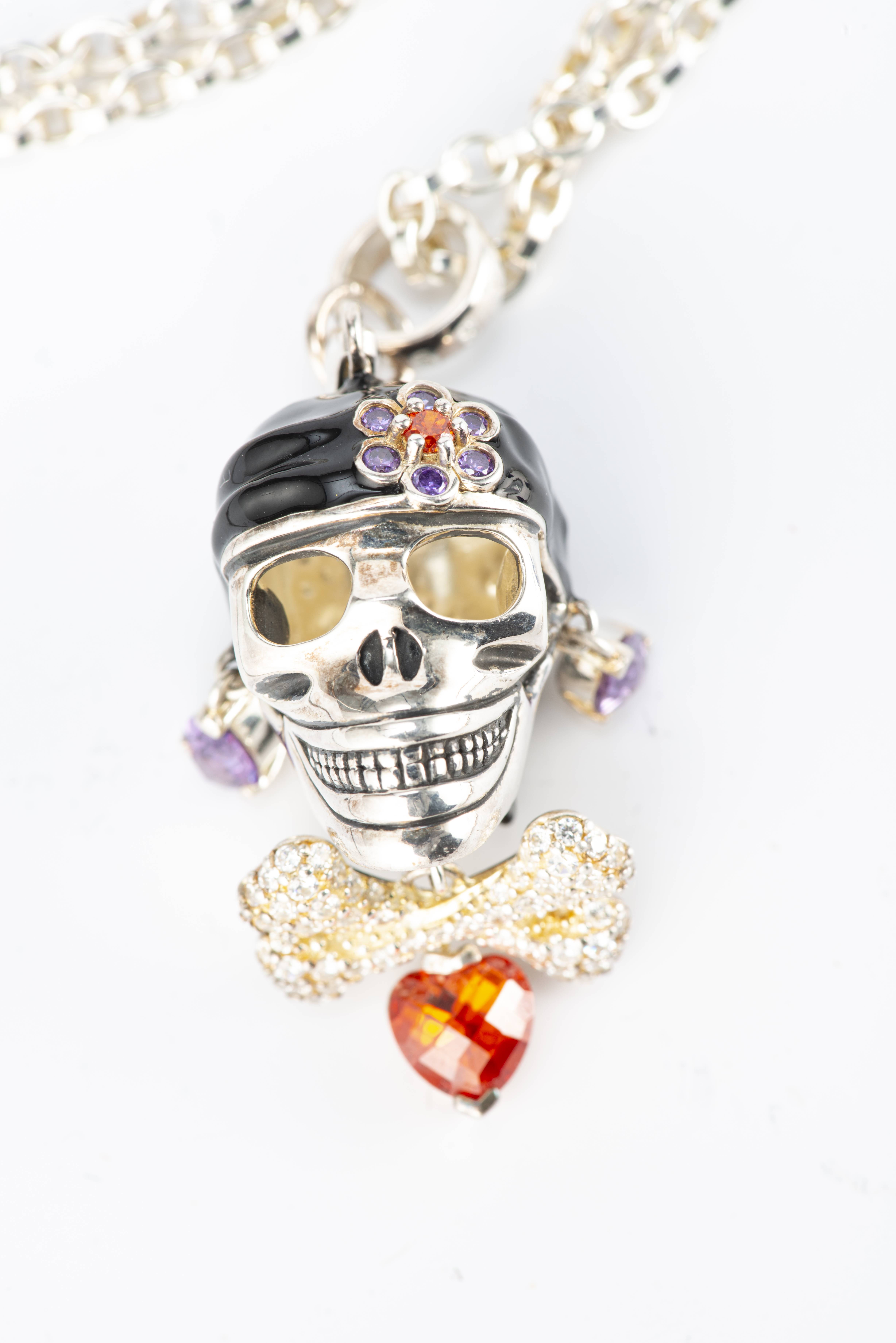 Lot composé de divers bijoux en argent .925 composé d'un collier Thomas Sabo 'Tête de mort' en argent et strass, une chaîne en argent et 1 chapelet en argent