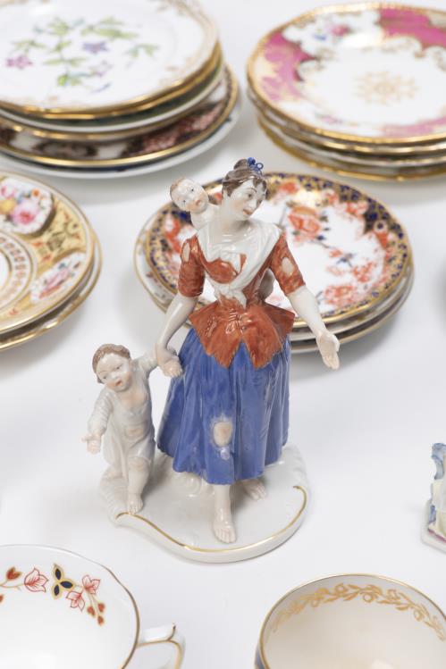 Lot de 25 tasses et 35 sous-tasses diverses à décors peints à la main