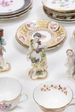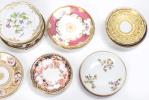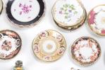 Lot de 25 tasses et 35 sous-tasses diverses à décors peints à la main. Le lot comprend : de la porcelaine de Herend, Meissen, Coalport, Tiffanny & Co, Cartier, Hermès, Spode Bone China, Royal Crown Derby.