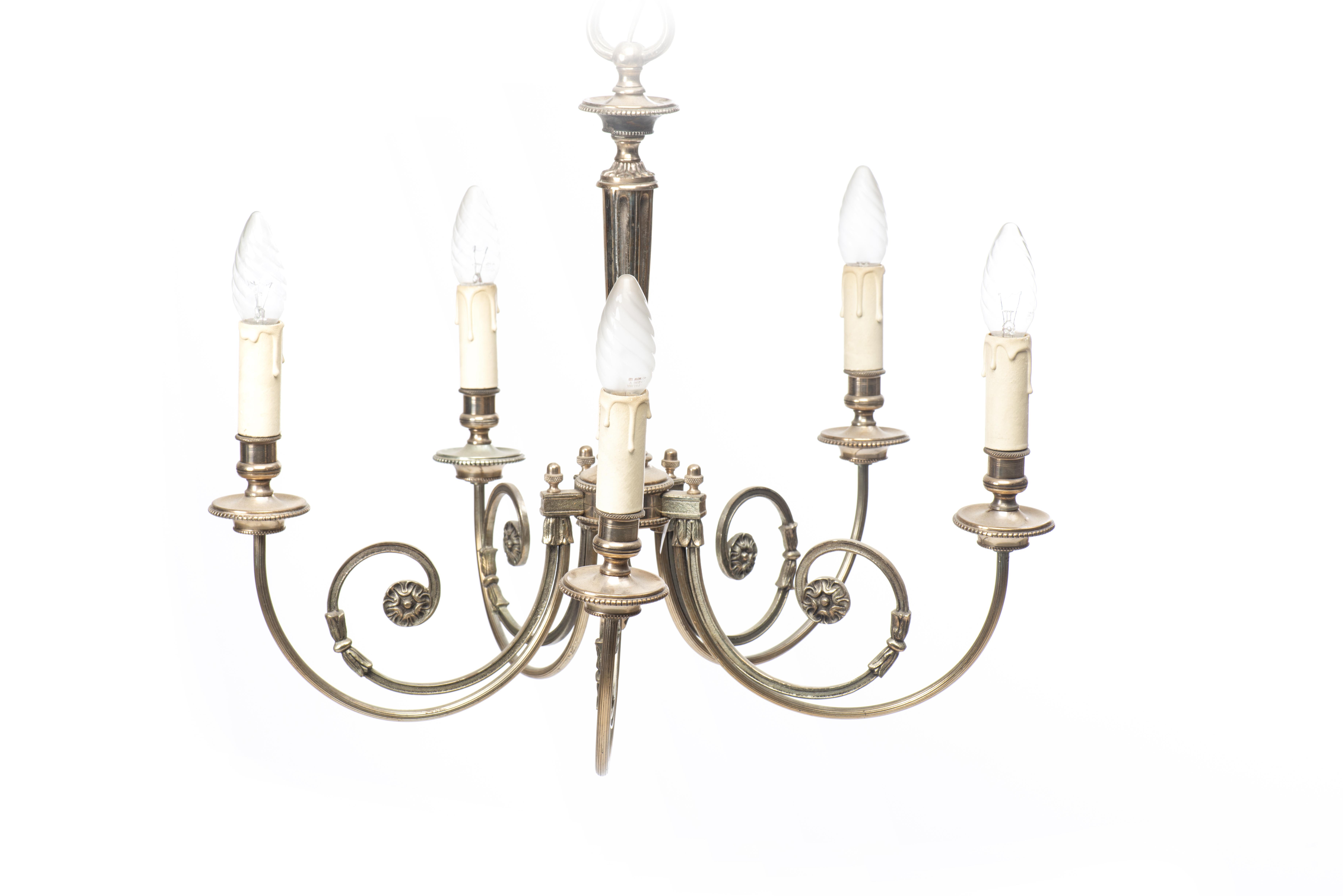 Maison JANSEN (dans le goût de), Lampadaire tripode et lustre à cinq feux