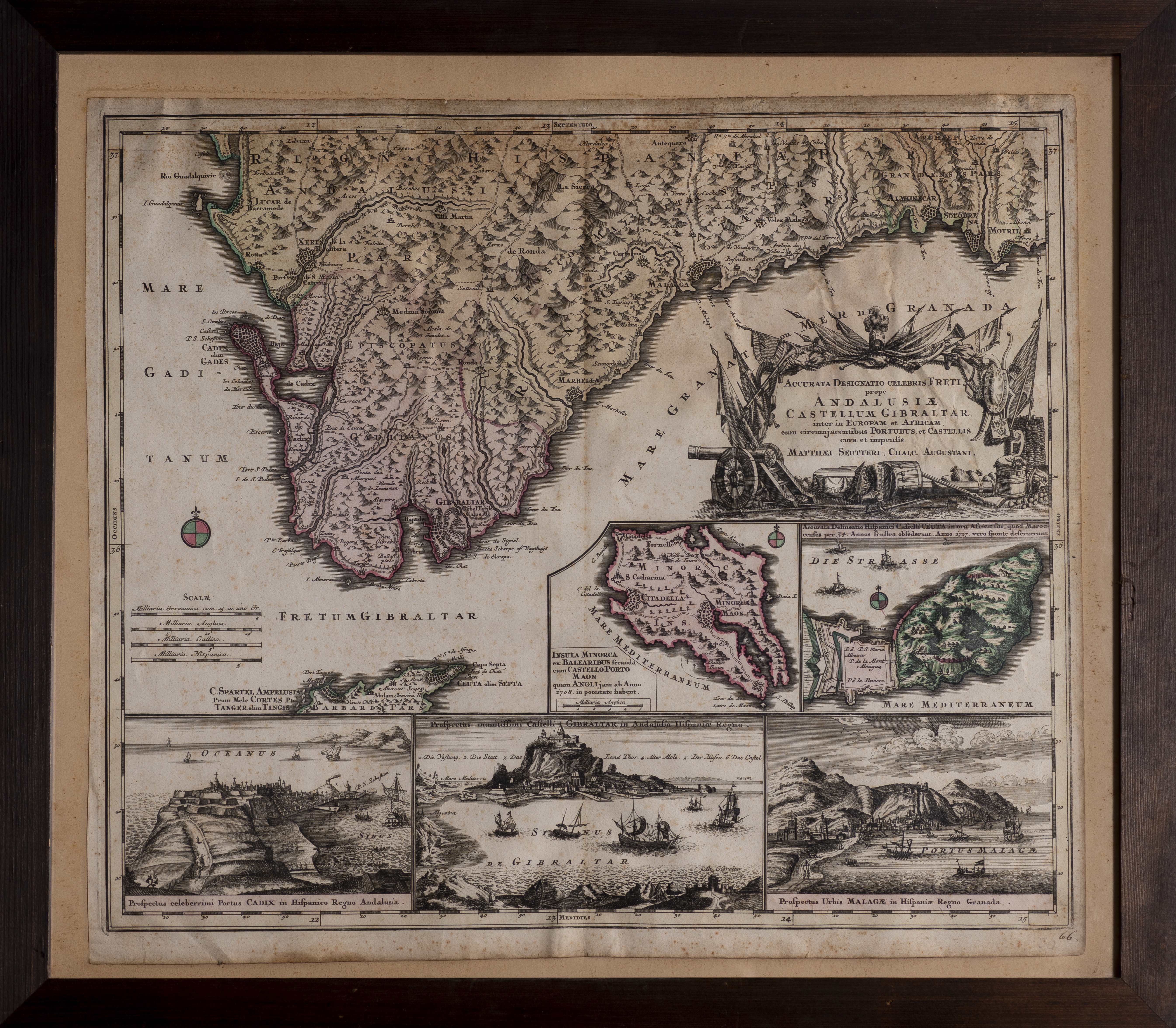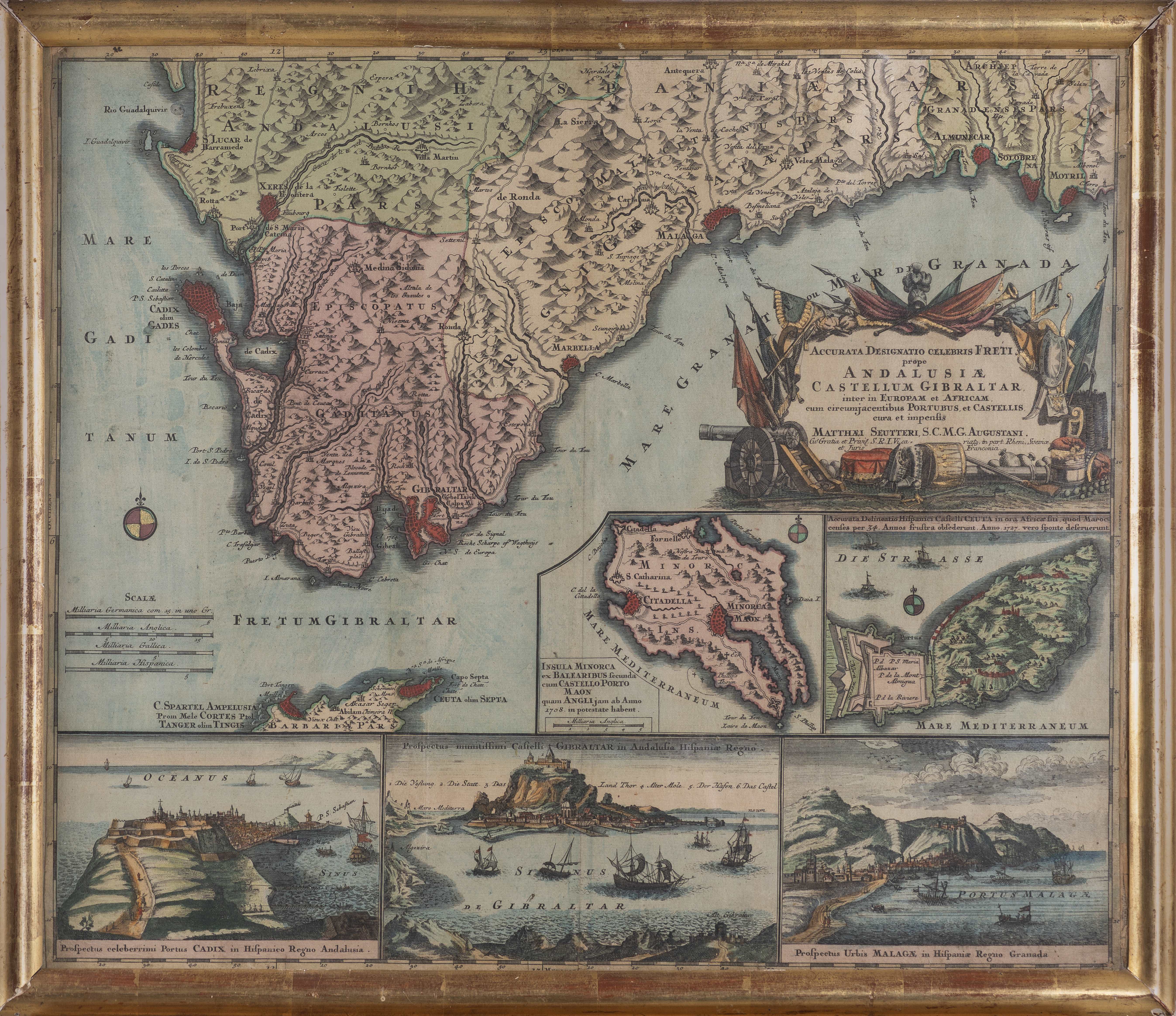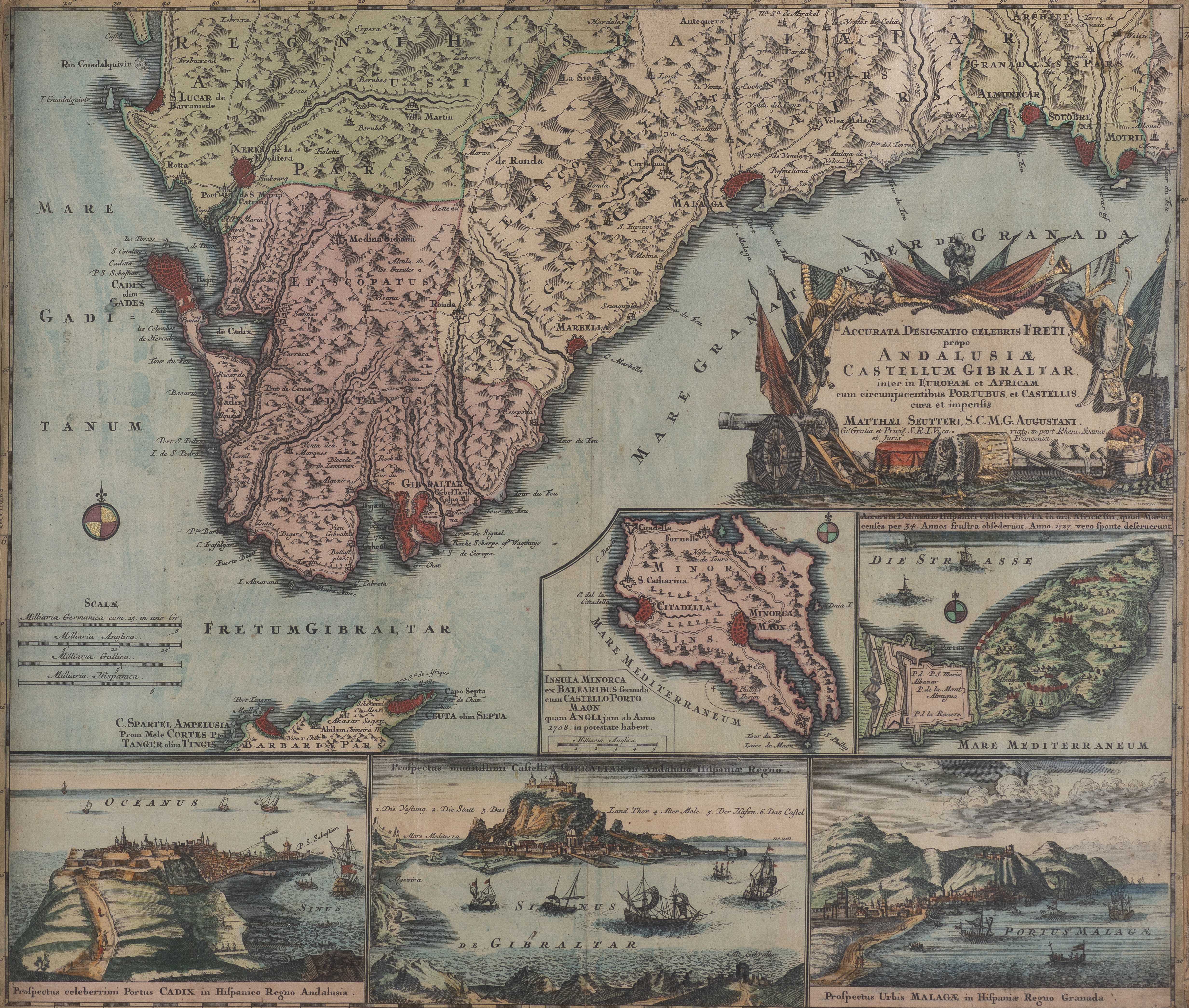 Matthäus Seutter (1678-1757), Accurata Designatio Celebris Freti prope Andalusiae Castellum Gibraltar inter in Europam et Africam cum circumjacentibus Portubus et Castellis cura et impensis. XVIIIe.