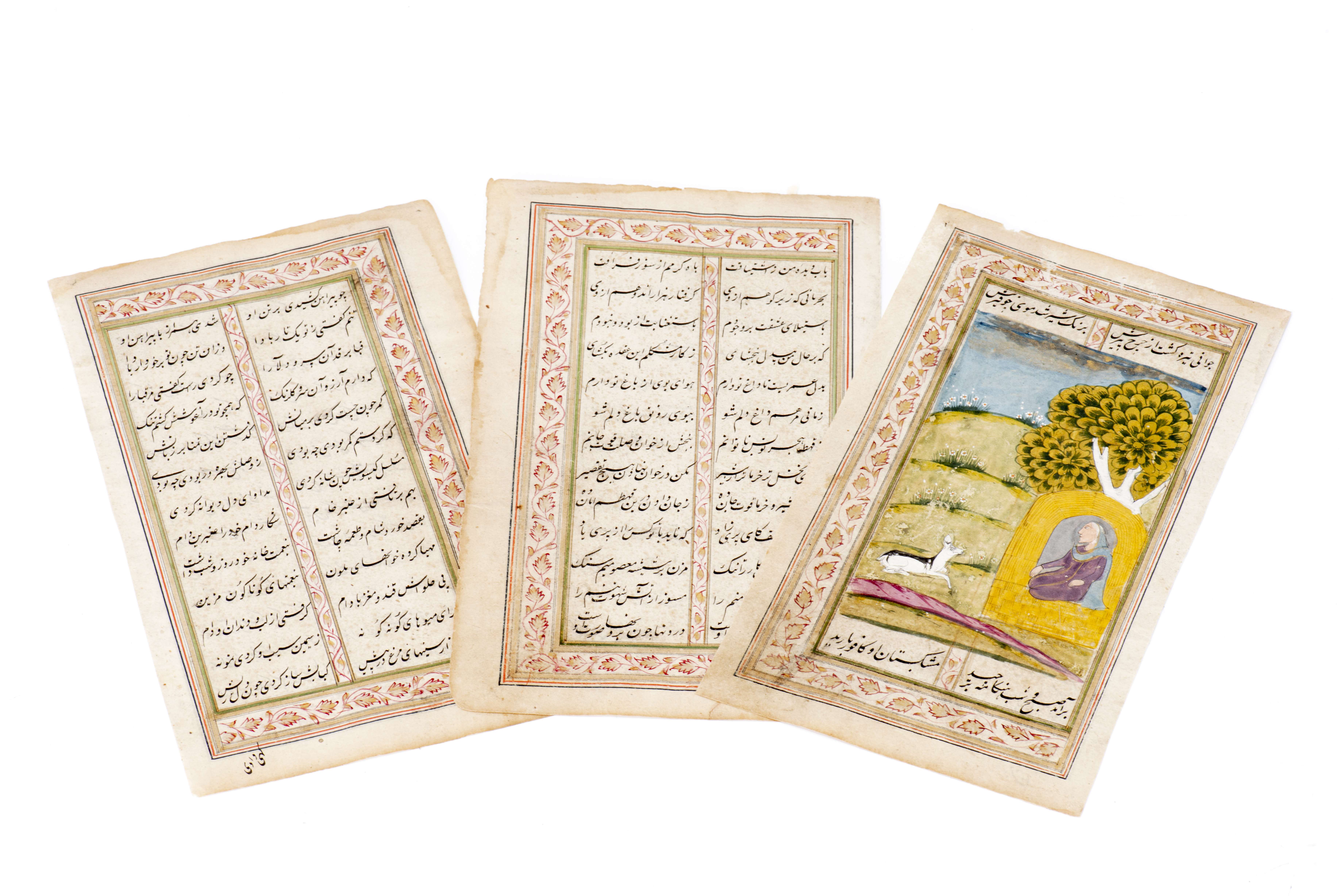 Miniature persane plus deux pages manuscrites
