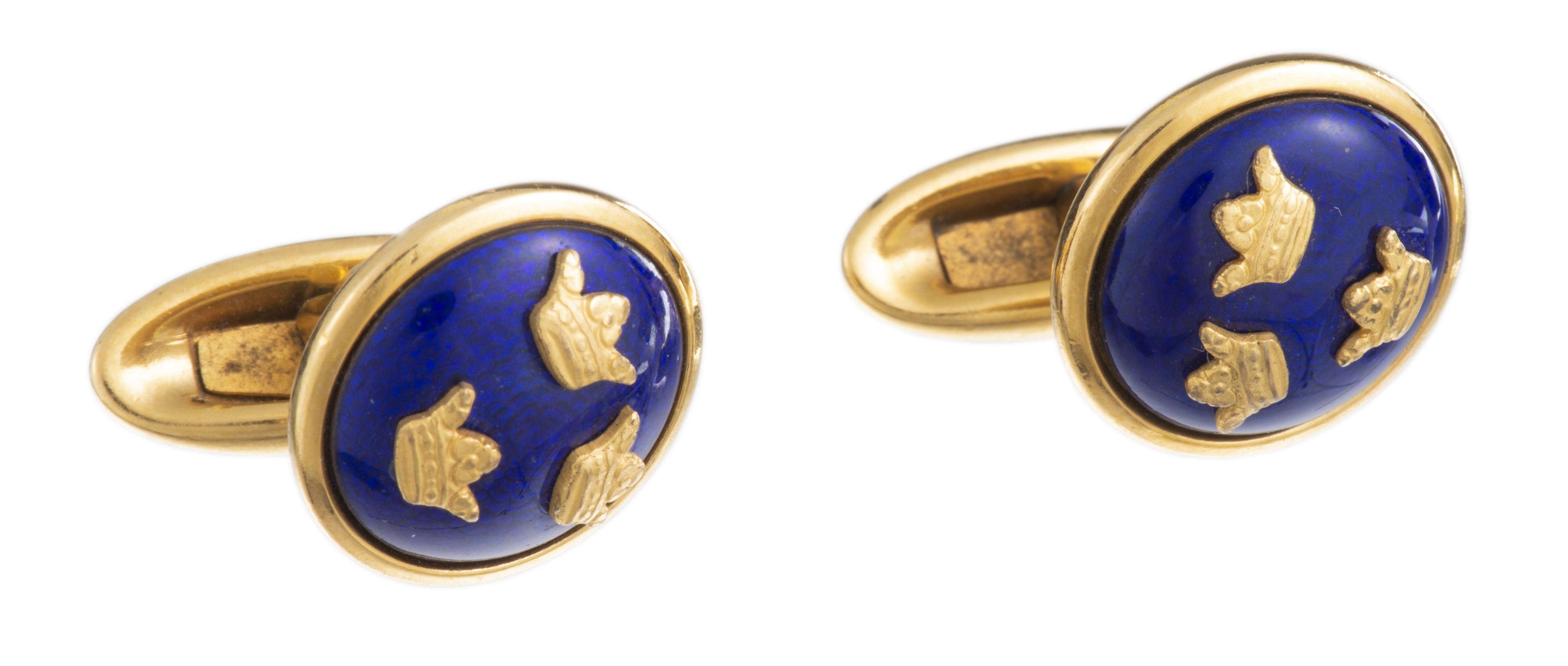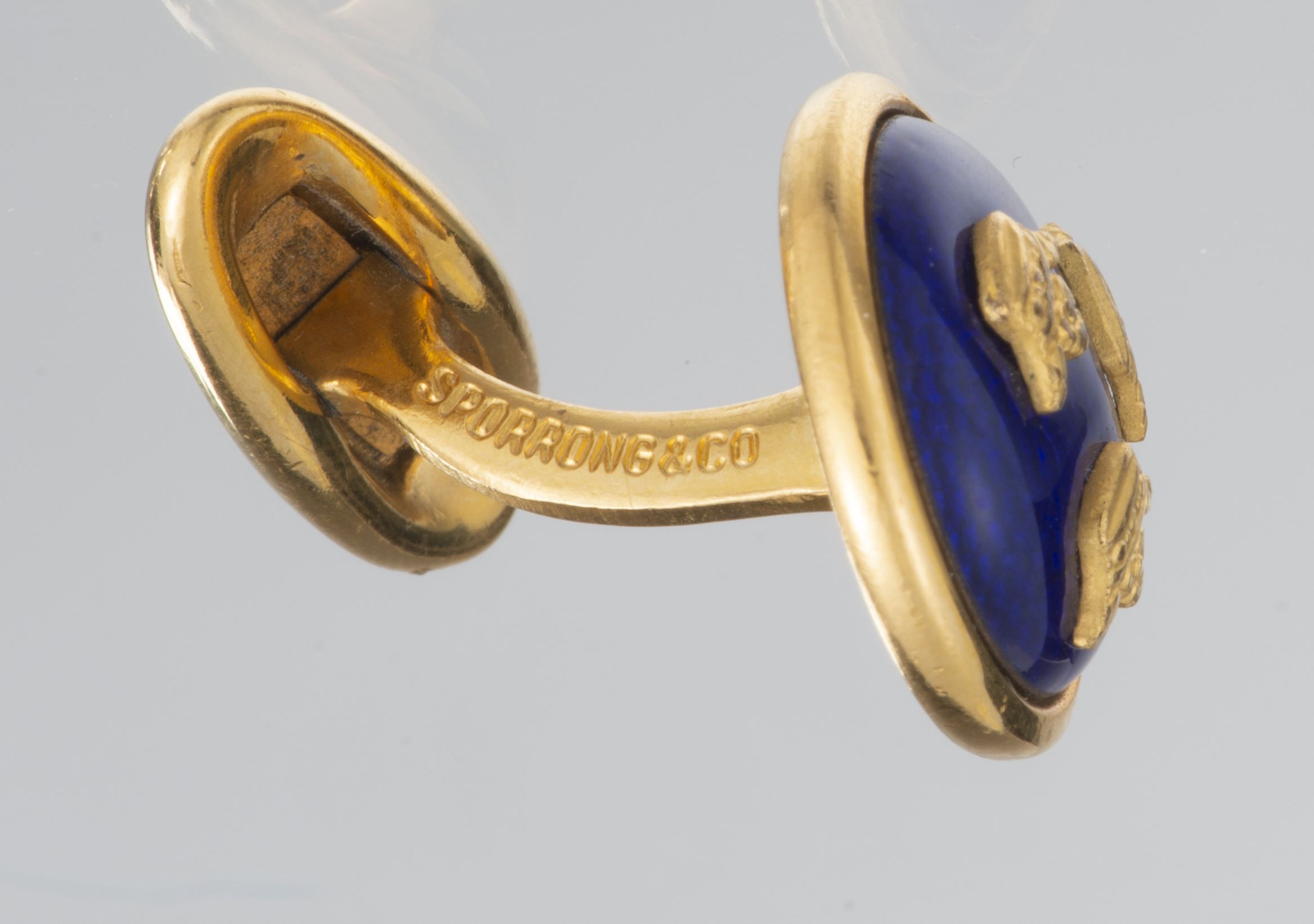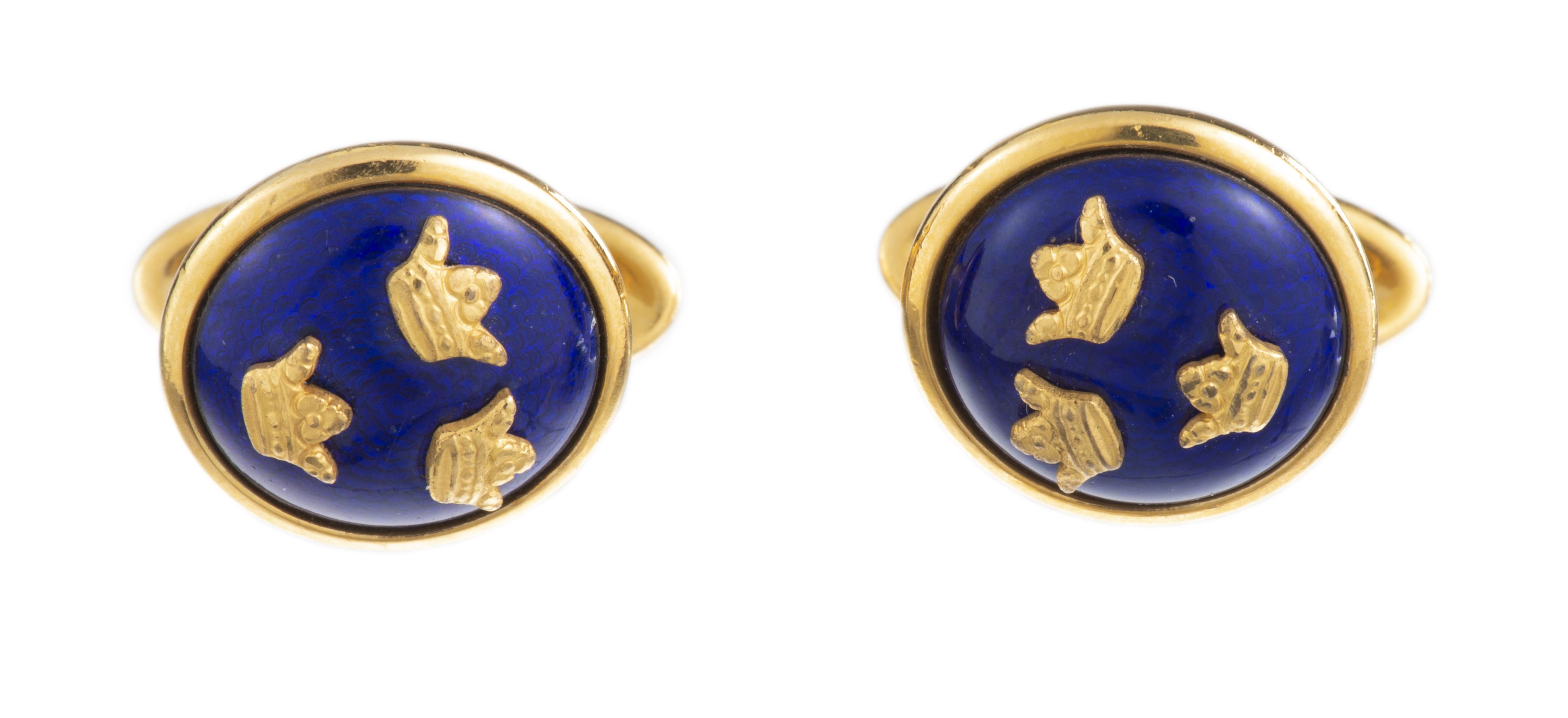 Paire de boutons de manchettes, or rose et lapis lazuli
