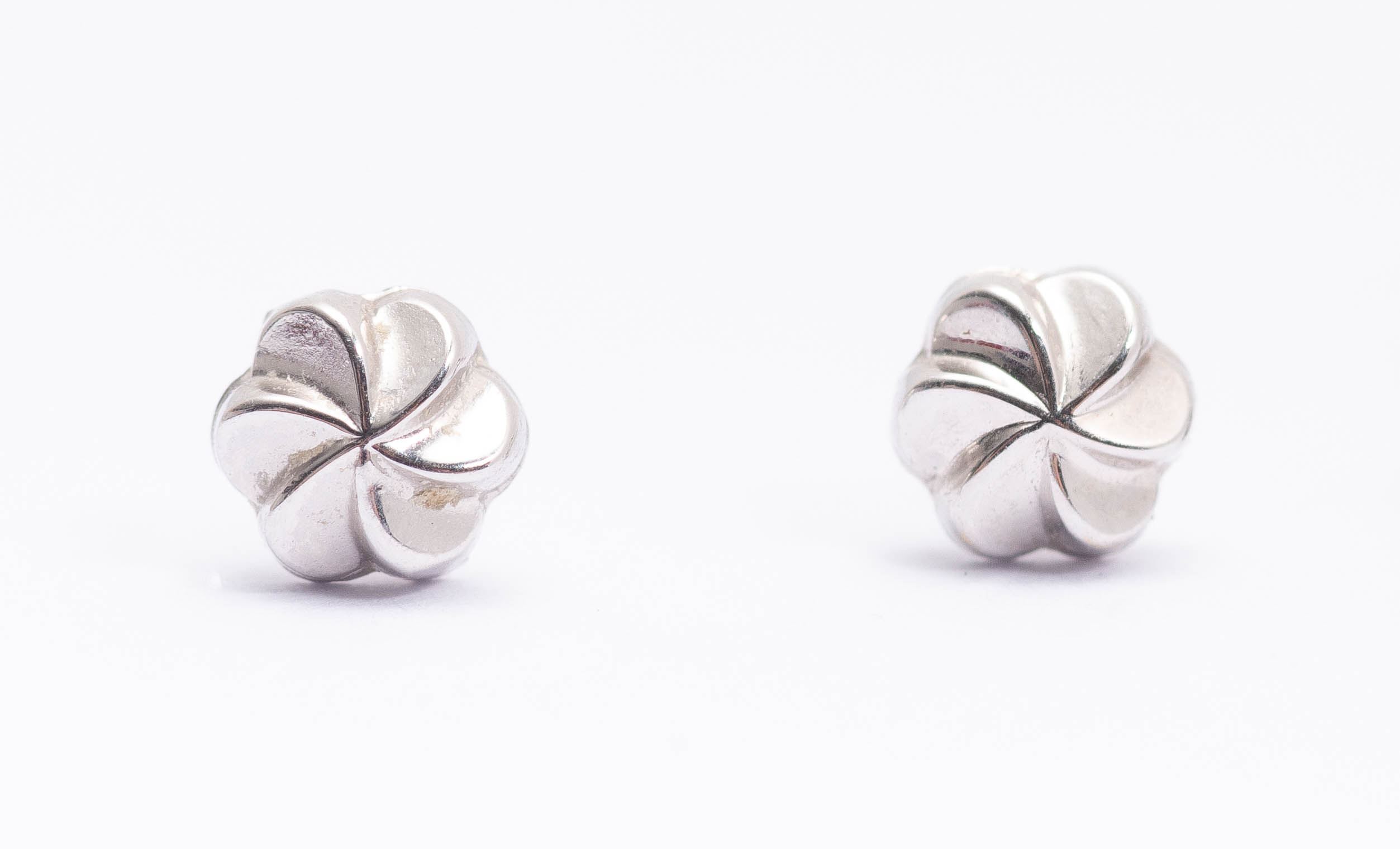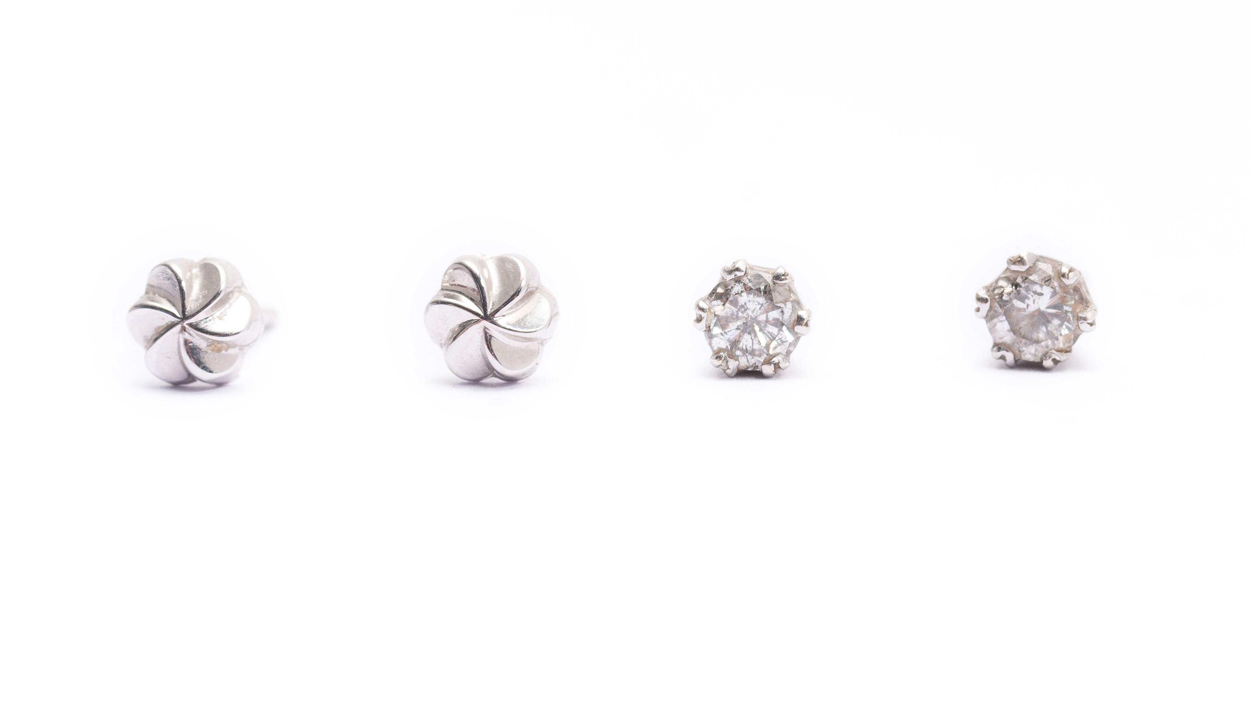 On y joint une paire de clous d'oreille en or blanc .750