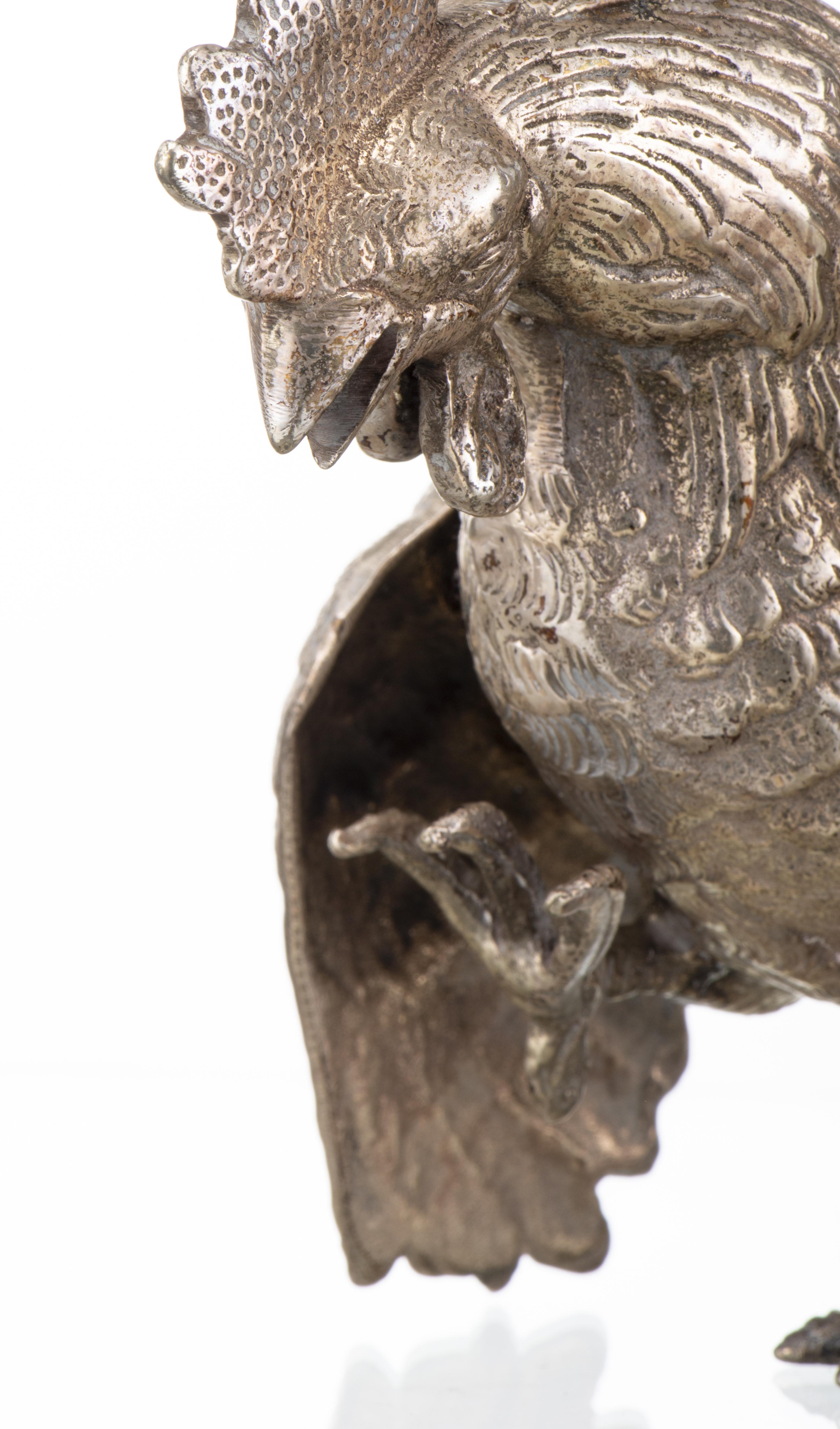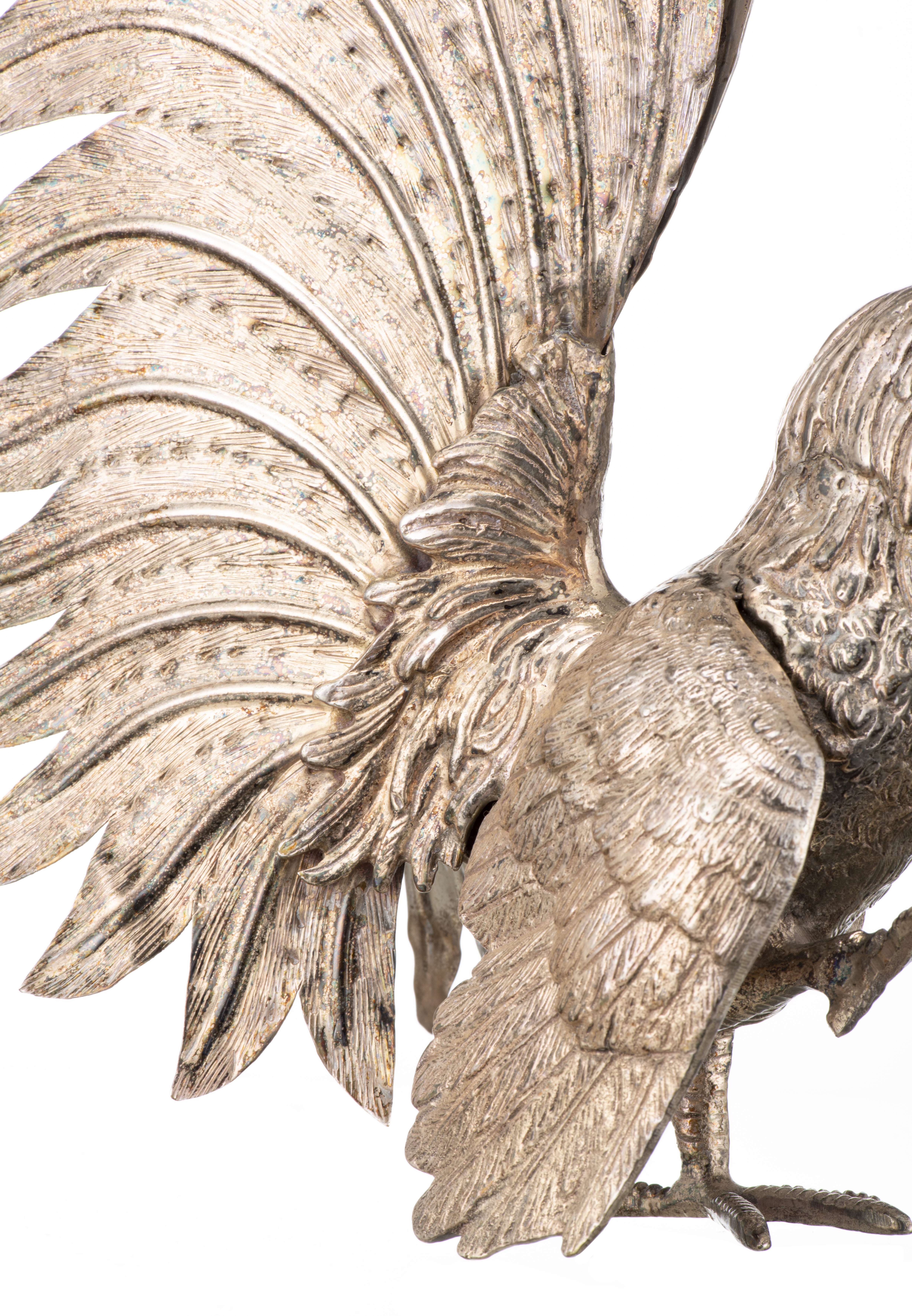 Paire de coqs en métal argenté