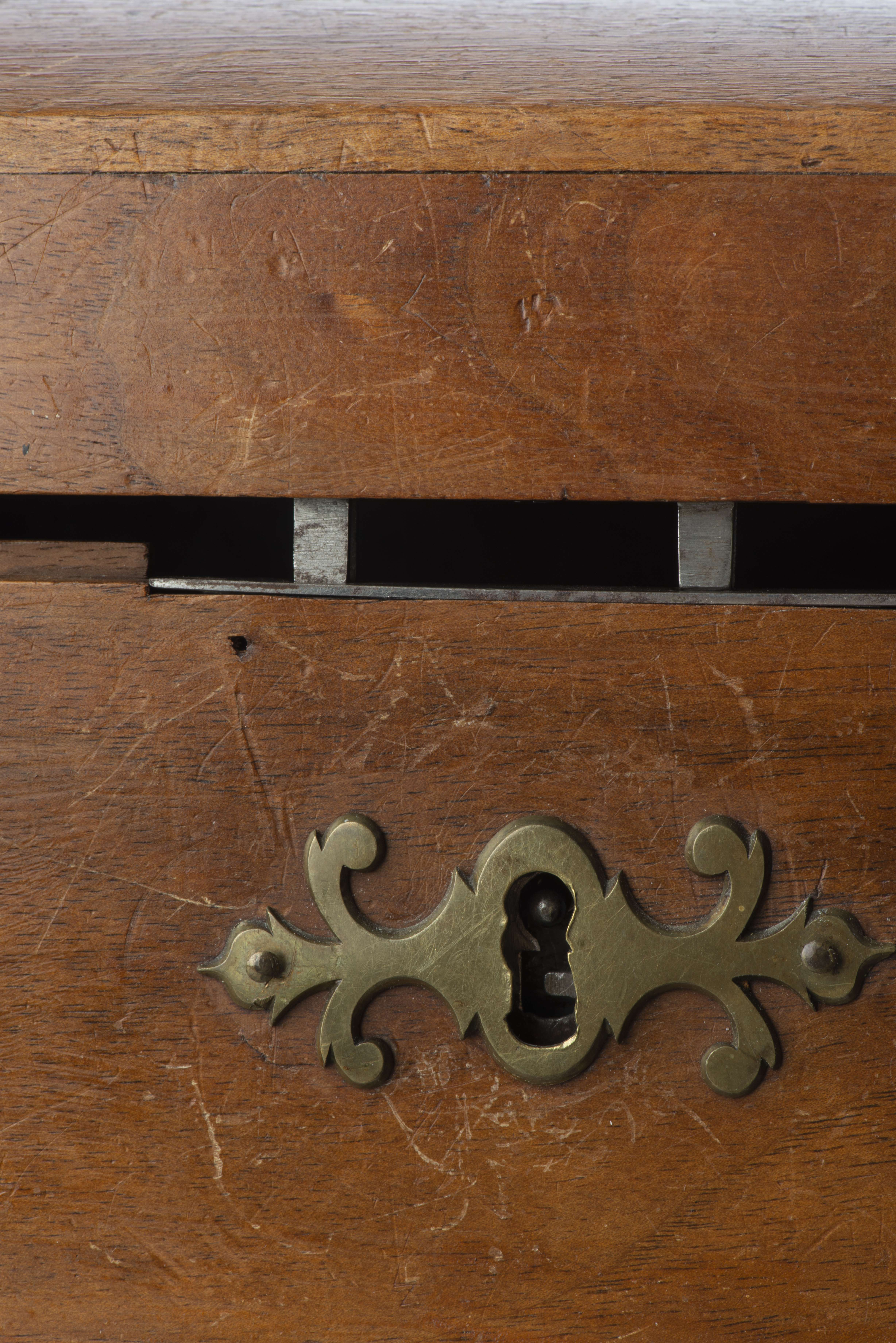 Petit coffre à papiers en noyer à couvercle bombé avec sa clé, Époque directoire, XIXe.