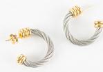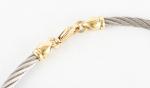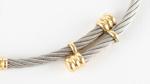 Philippe CHARIOLE, parure en or et acier comprenant un tour de cou, une paire de pendants d'oreilles et une bague à 3 godrons.
