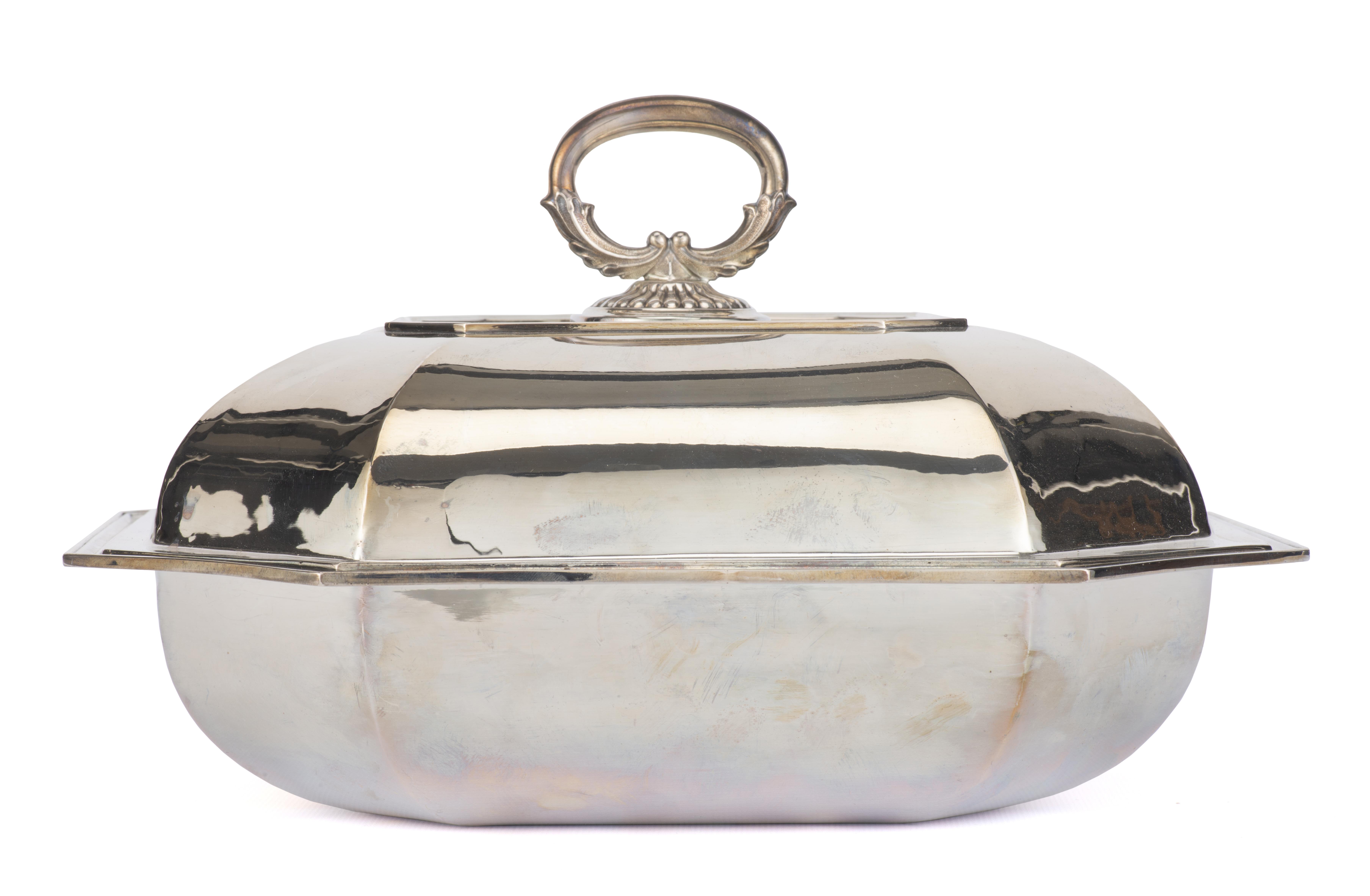 Plat couvert en argent .800 italien poinçon *17TV à pans coupé et prise amovible à cannelures rayonnantes.