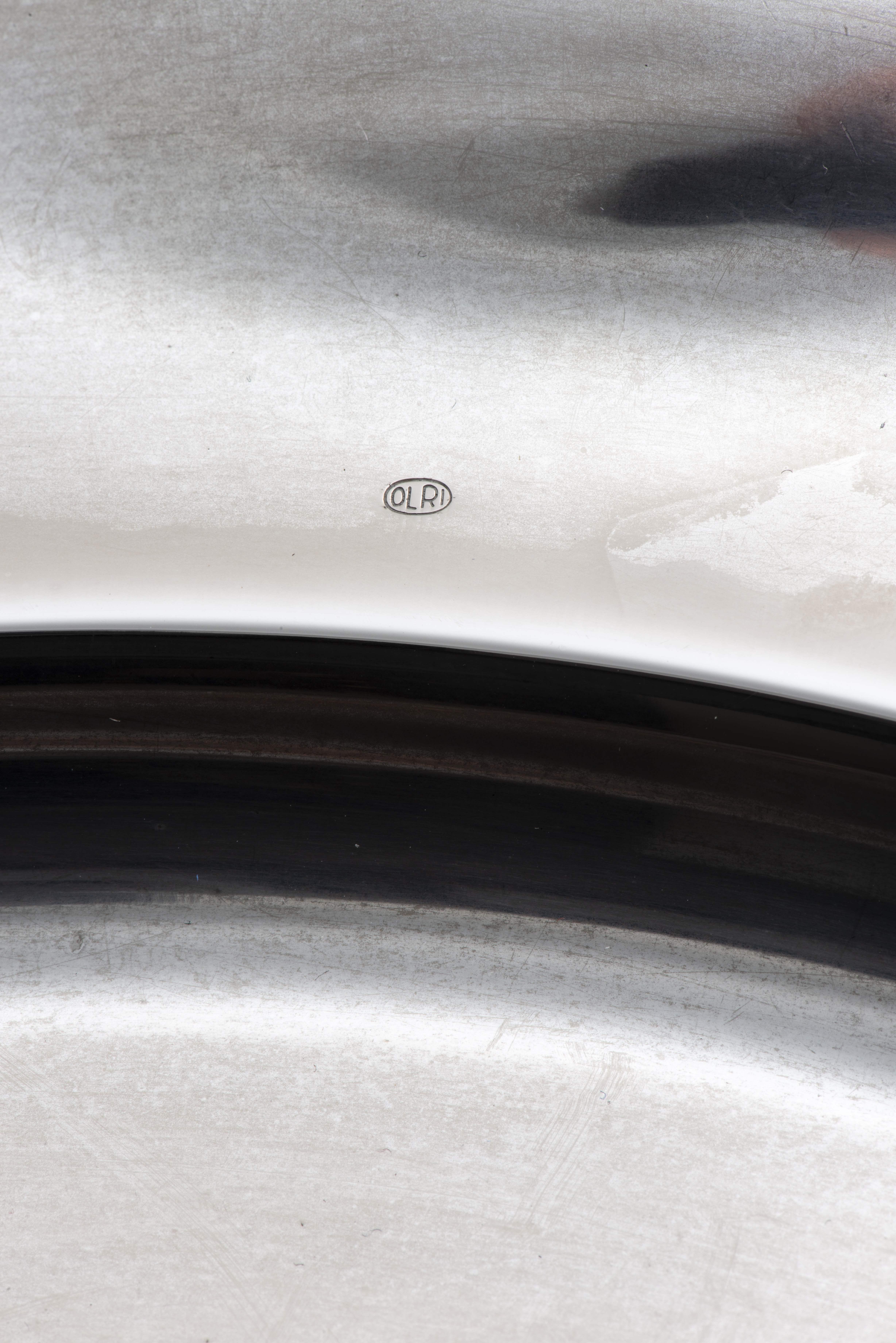 Plateau rond en métal argenté par OLRI