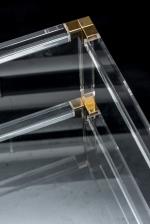 Roméo Rega, table basse en altuglas et métal thermolaqué doré à 2 plateaux en verre.