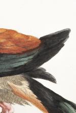 Saverio MANETTI (1723-1784), cinq planches d'"Anatre" rehaussées à l'aquarelle, et gravées par Violante VANNI (1732-1776), titrées en haut et inscrite en bas de la planche "Dilletante di Storia naturale, e Socio Ordinario della Reale accademia di agricoltura e dei Georgofili", tiré de Storia degli Uccelli [Florence: 1767-1776] en 5 volumes.