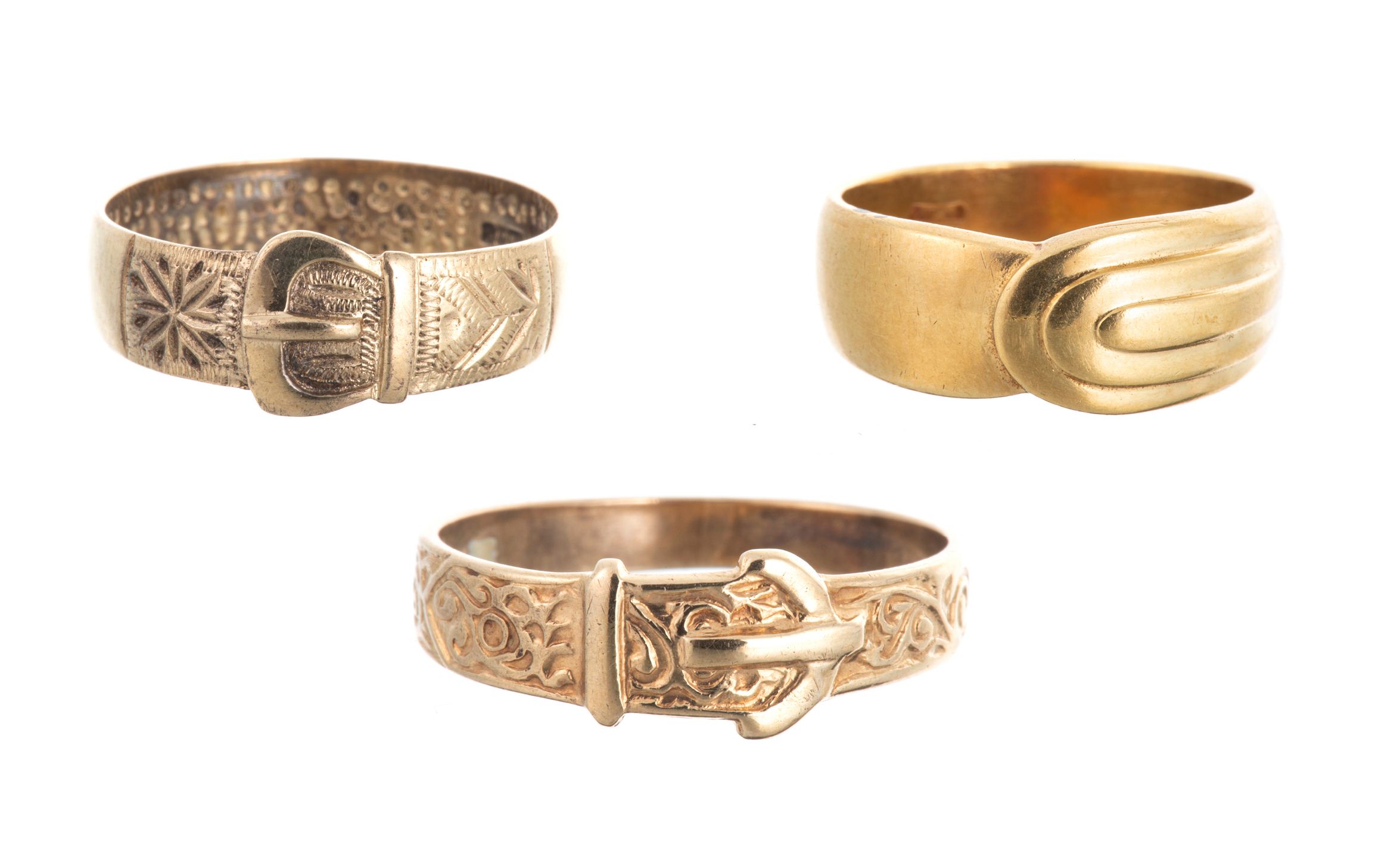 Trois alliances or, dont l'une stylisée et deux autres victoriennes