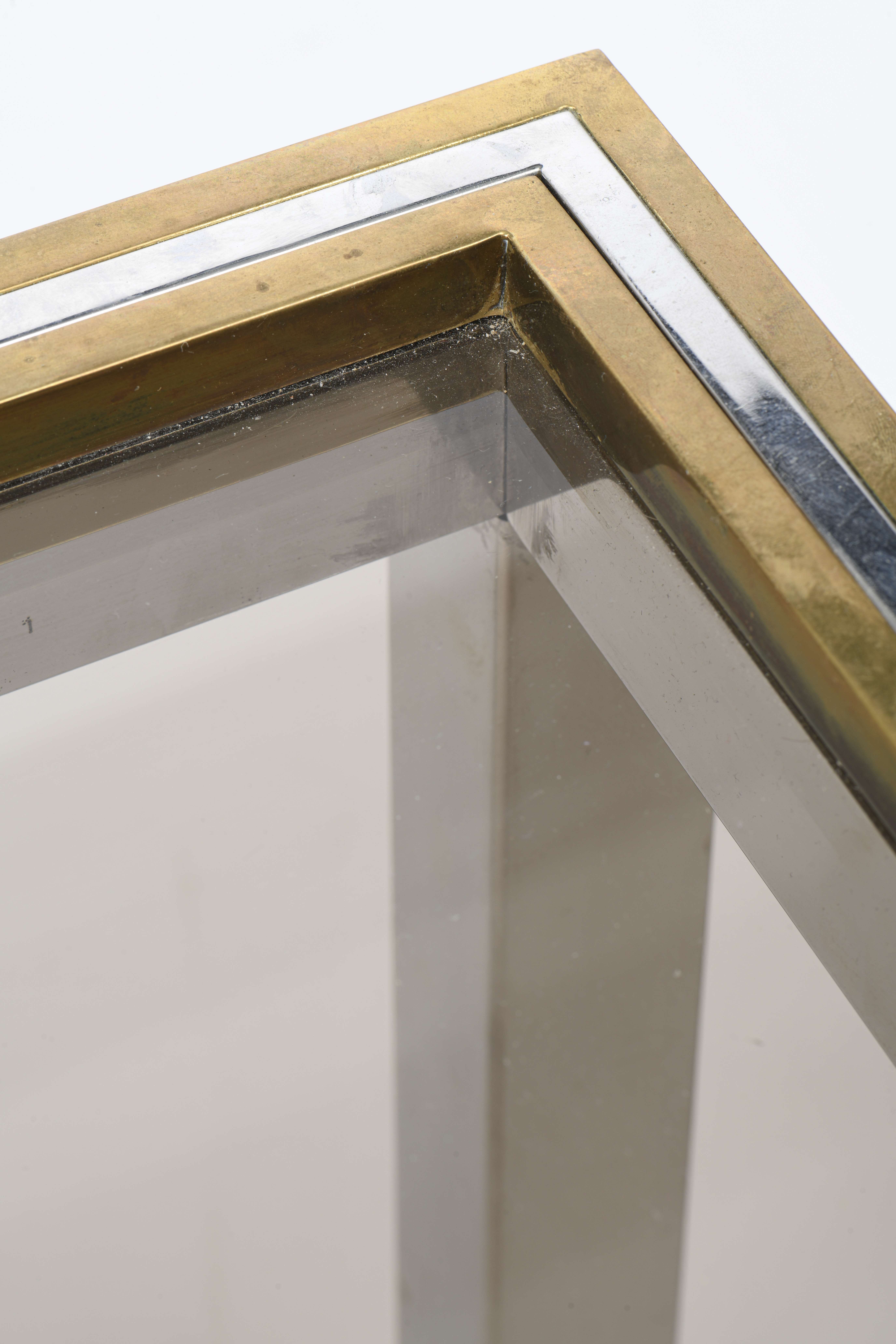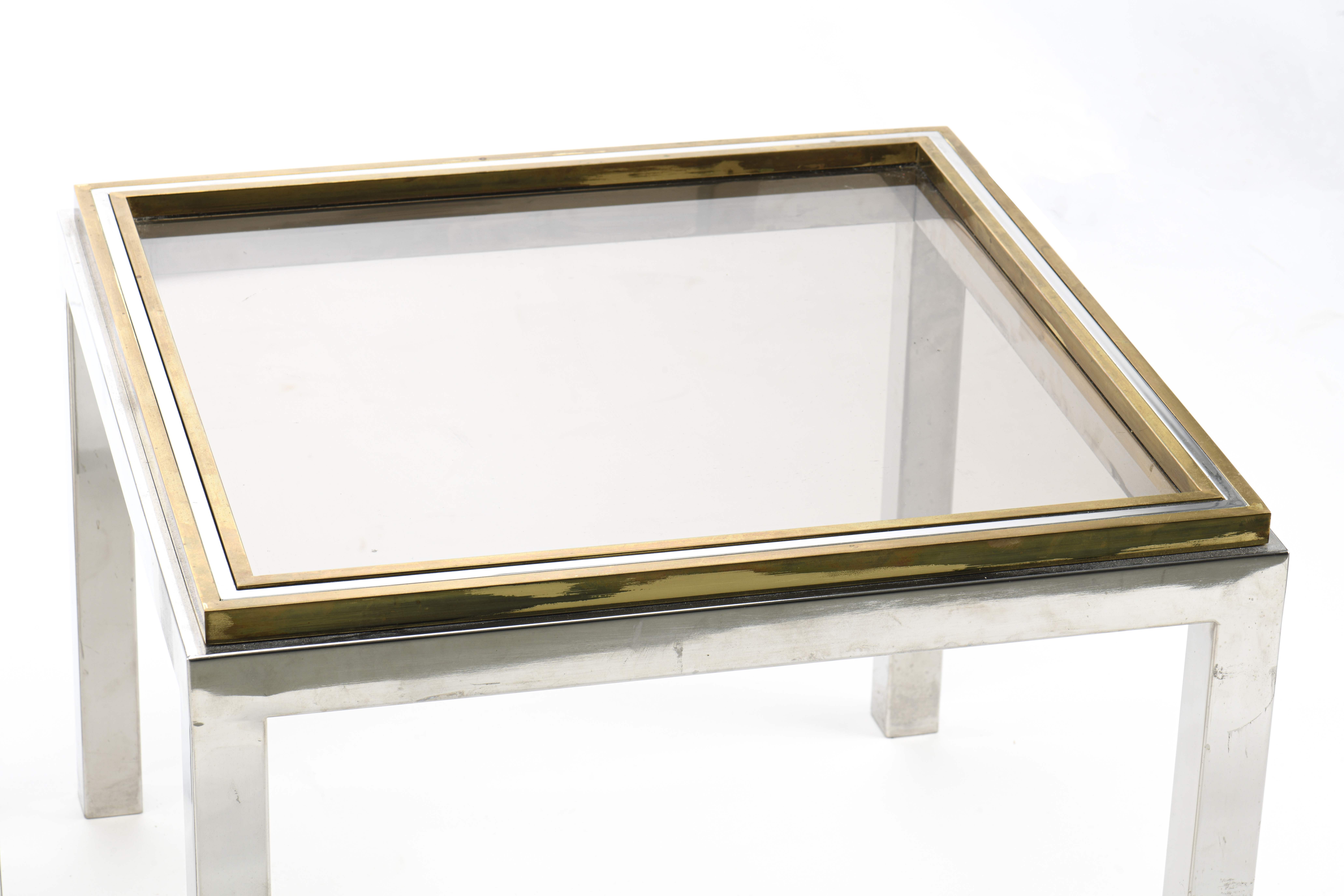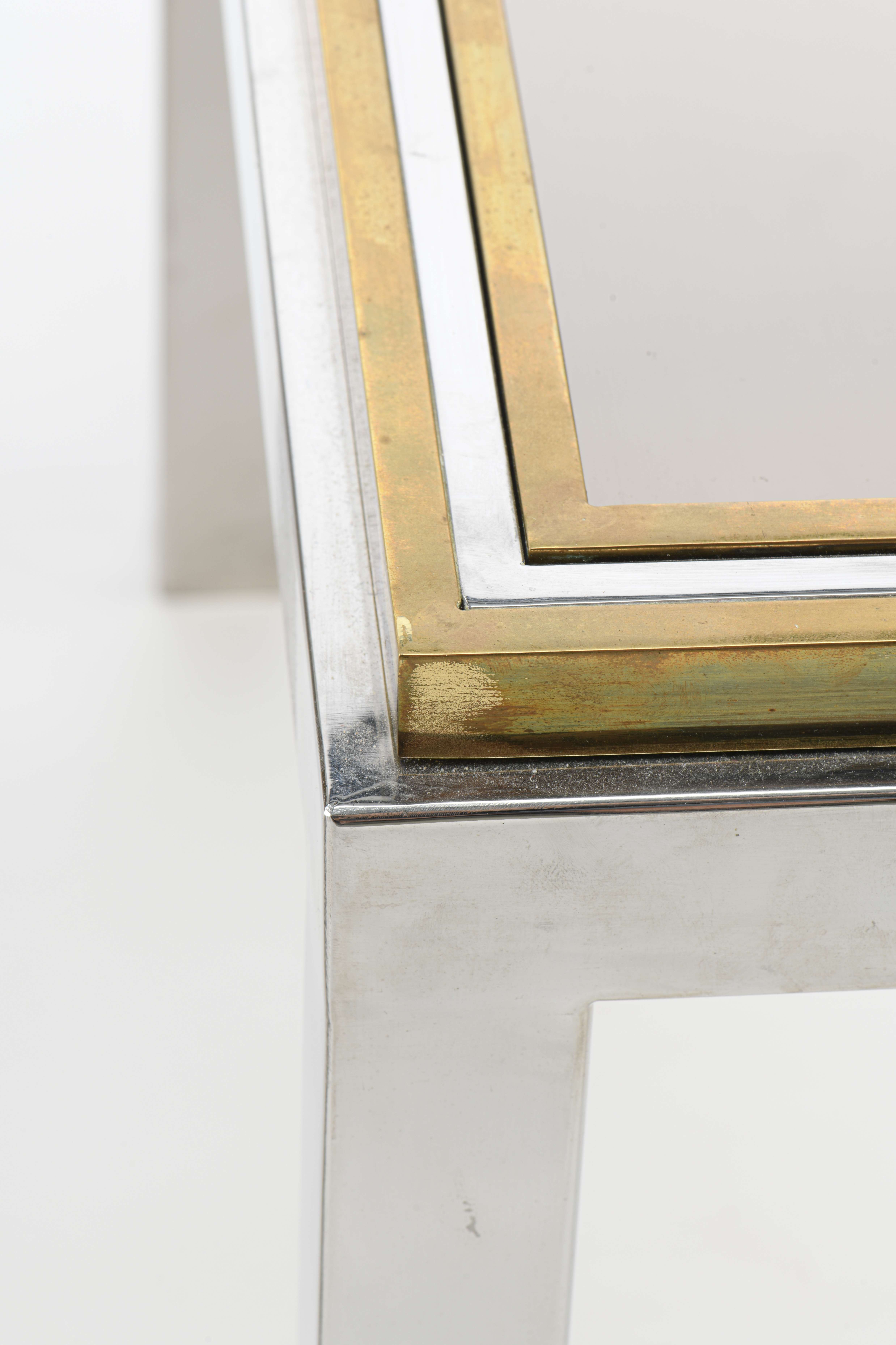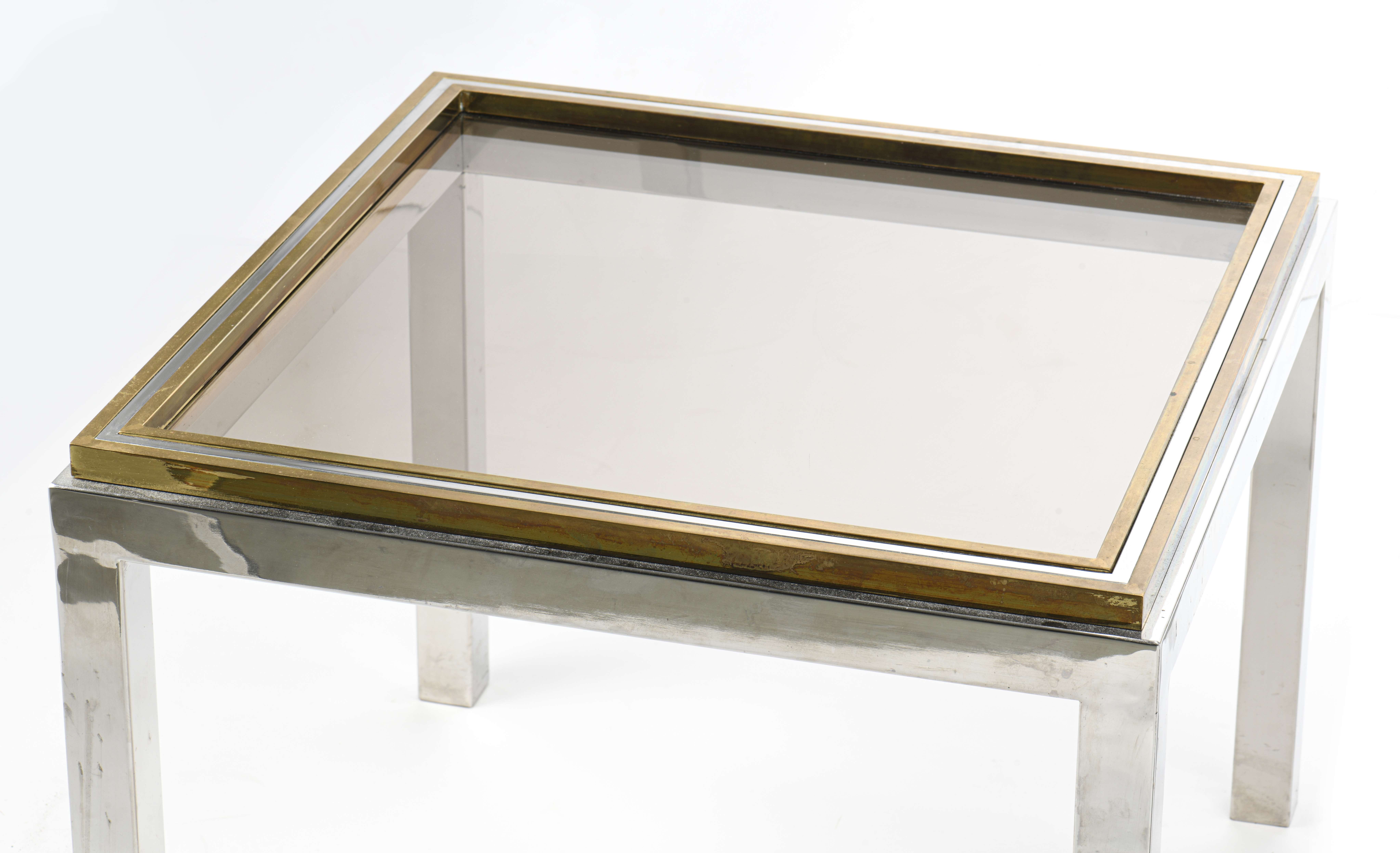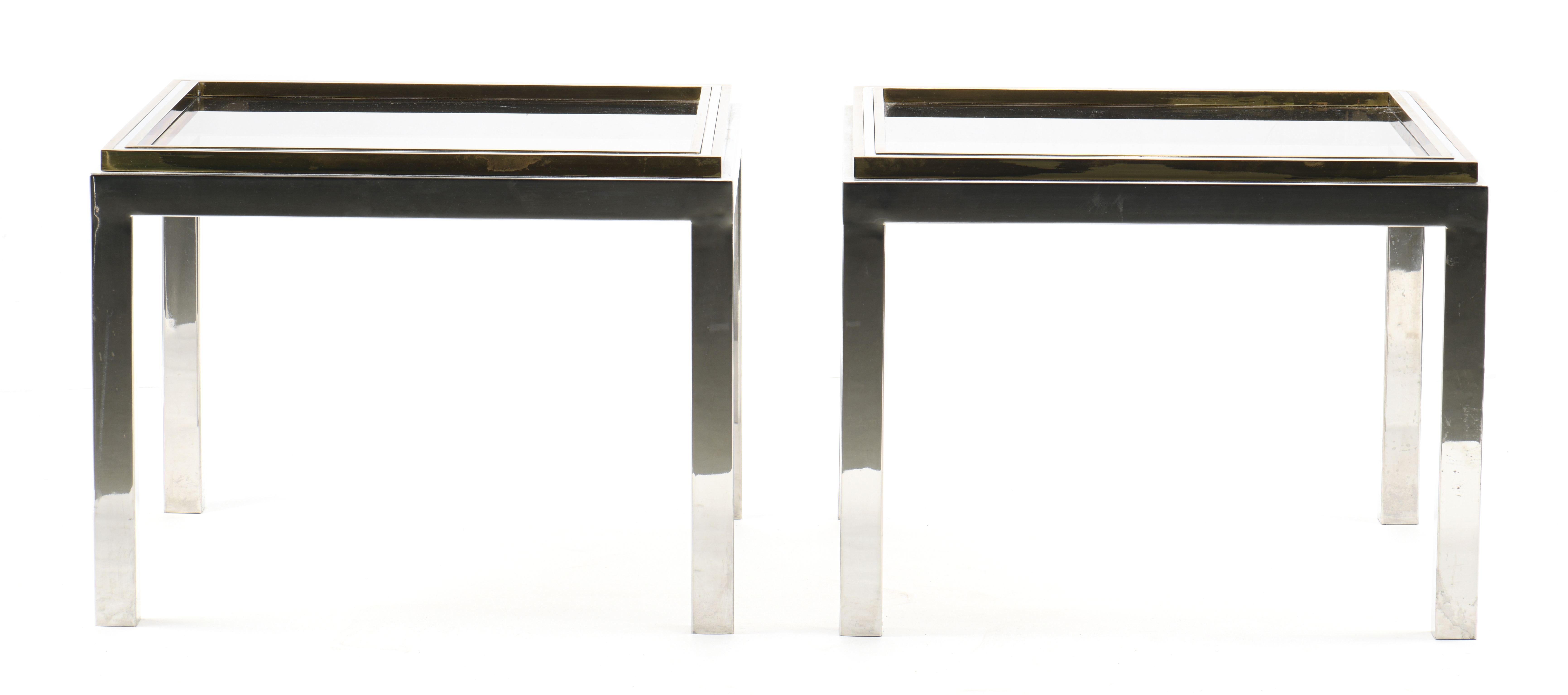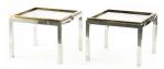 Willy Rizzo (1928-2013), 2 tables bouts de canapé carré en métal chromé et laiton, modèle FLAMINIA.