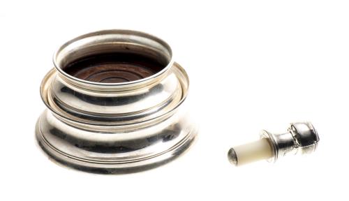 Bouchon à champagne en métal argenté de marque Siléa et paire de dessous de bouteilles en métal argenté