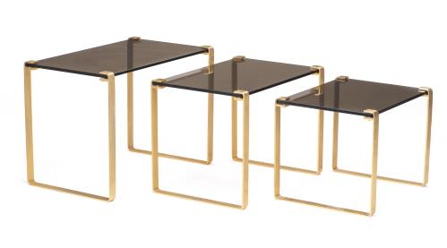 Travail des années 50, Table basse moderniste en fer, laiton et verre