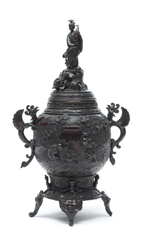 JAPON, ère Meiji, fin XIXe début XXe, Brûle-parfum en bronze
