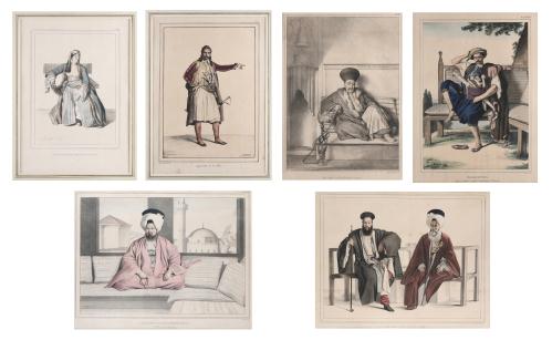 Louis DUPRE (1789 - 1837 & Charles MOTTE (1785-1836), Ensemble de 6 lithographies (cinq en couleur et une en noir) de la série "Voyage a Athènes et à Constantinople…"