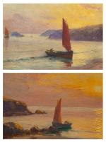 Jacques MARCELIN (XIX-XXe), deux "Bord de lac", huiles