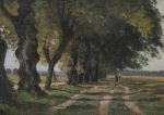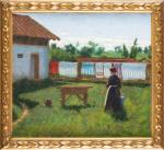 Théodore de SAUSSURE (1824-1903) "Scène de genre dans un parc", Huile sur bois