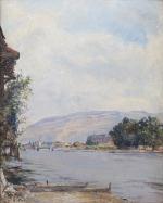 Edma MORIZOT-PONTILLON (1839-1921), "Paysage de campagne au bord de l'étang", Huile sur toile